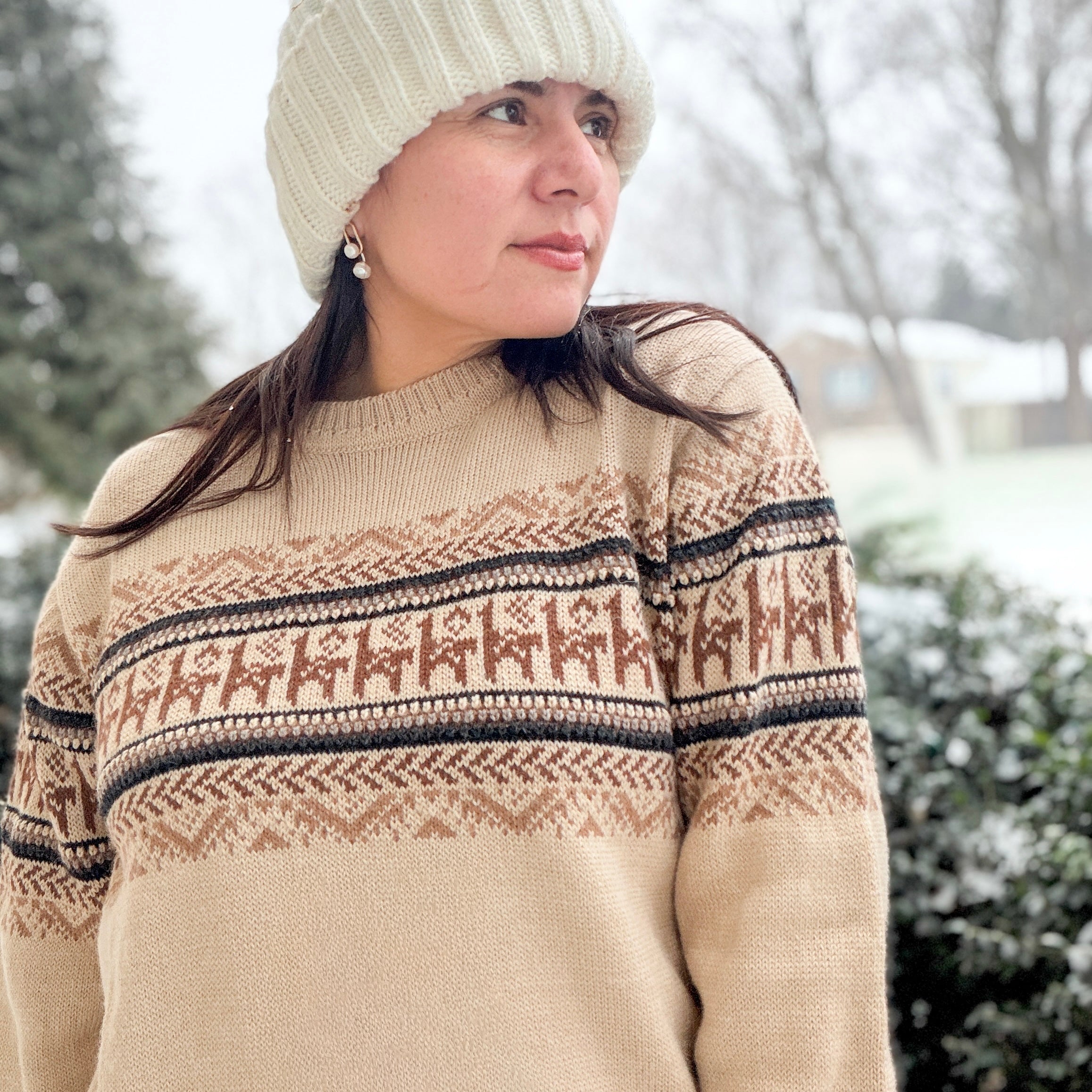 Celebrating the art of slow craftmanship, our Margarita hand knits are skillfully handcrafted by Quechua mamita artisans in the Peruvian Andes.
