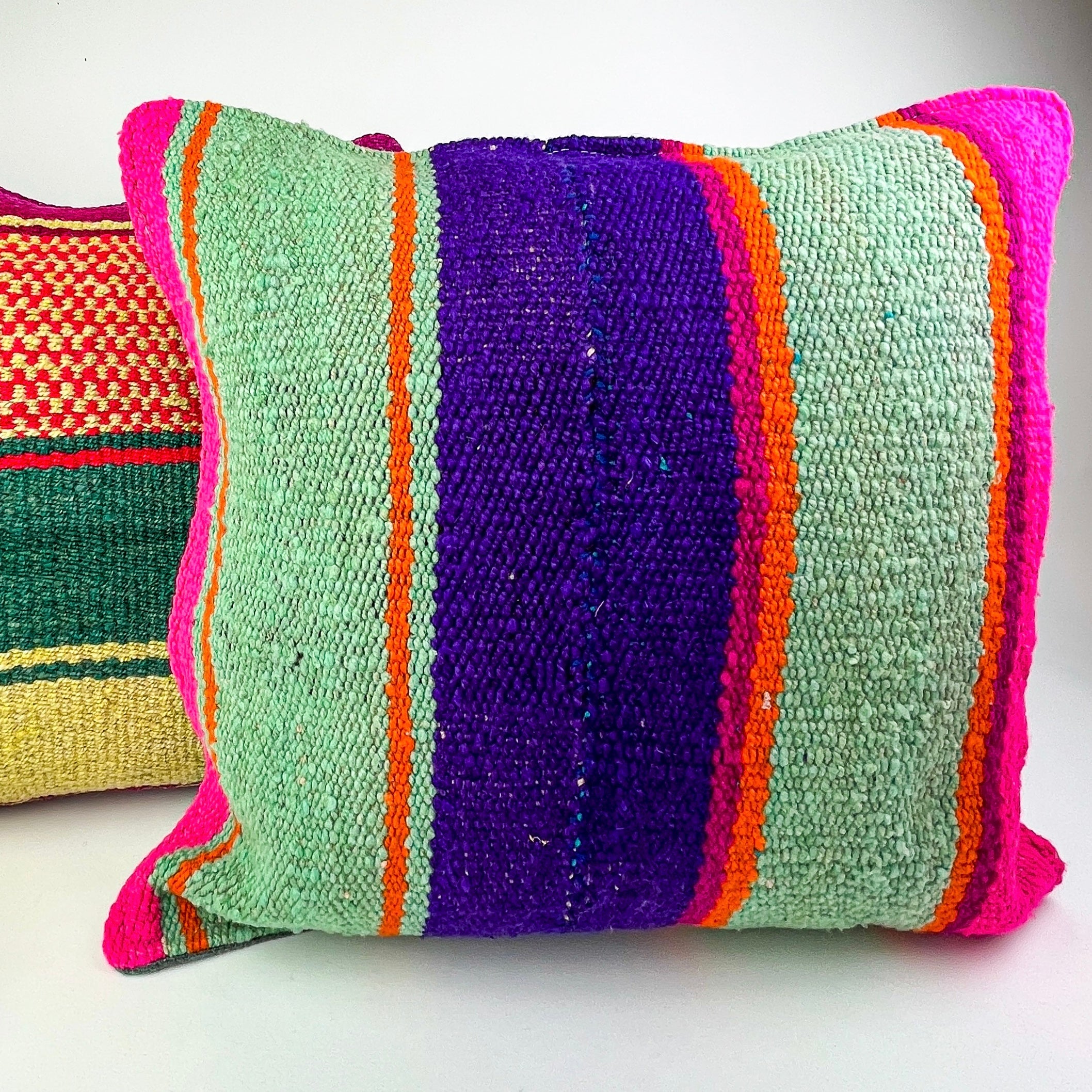 Handwoven Wool Pillow Cover 56 : (18x18) Yellow Green Stripes, Boho Home Decor