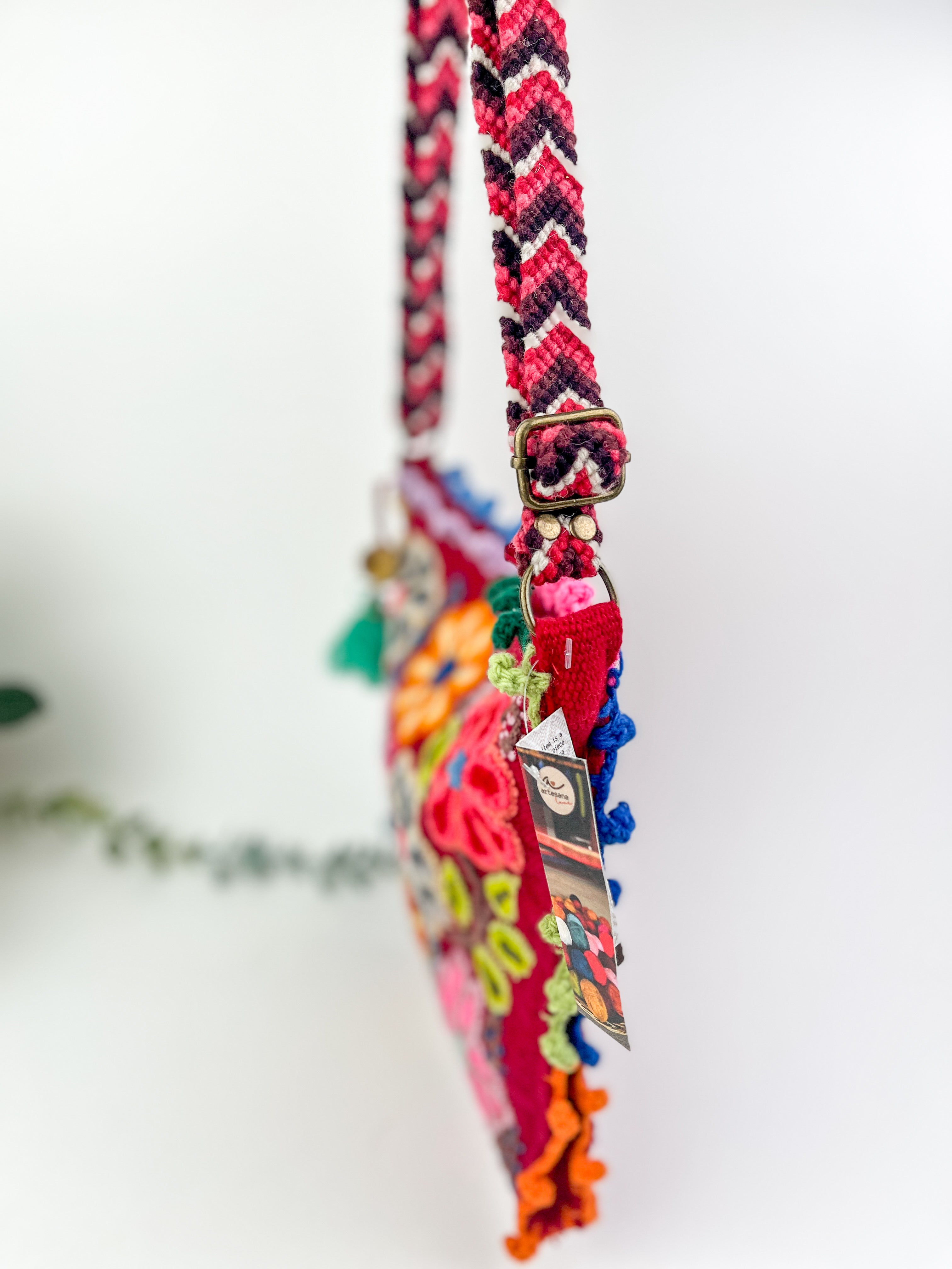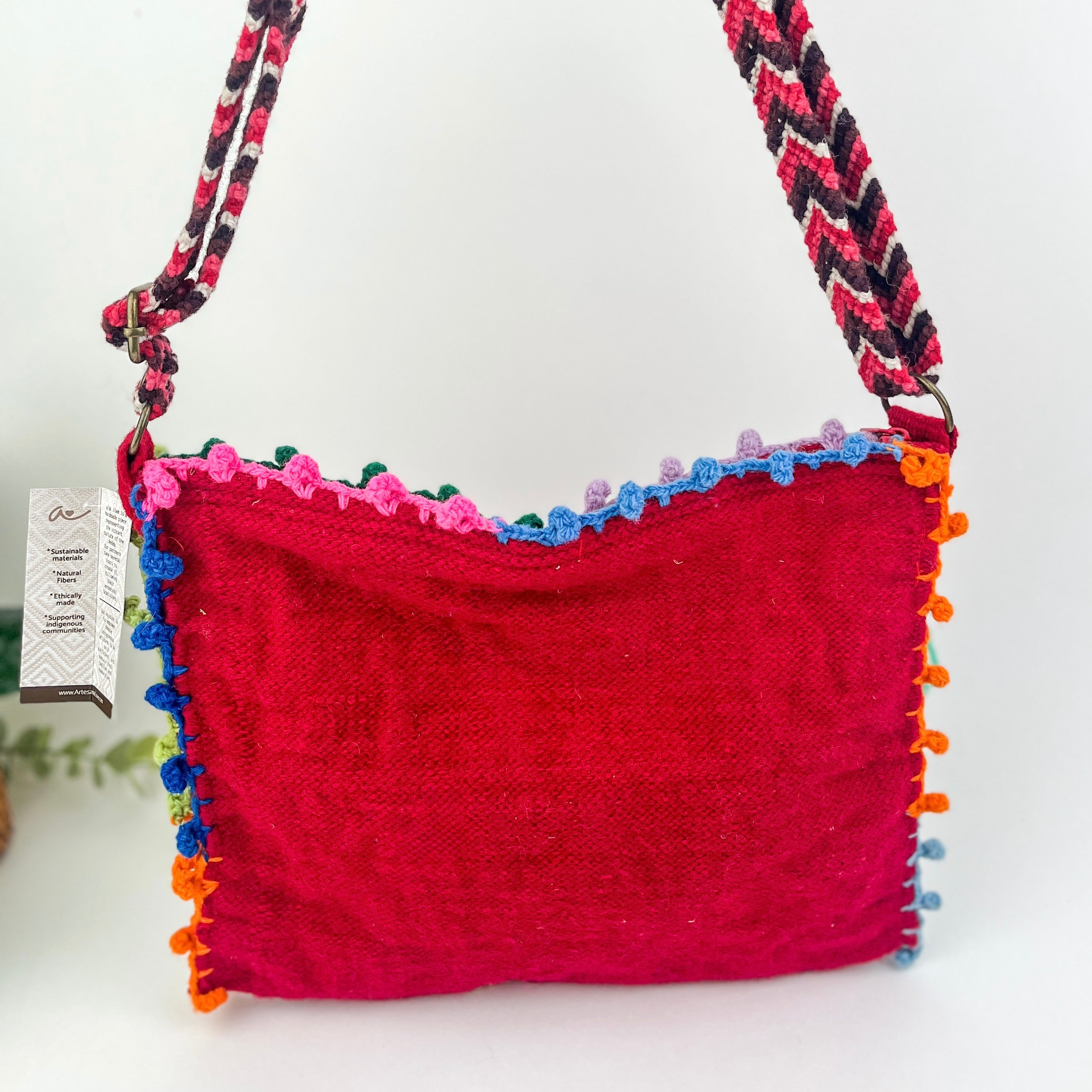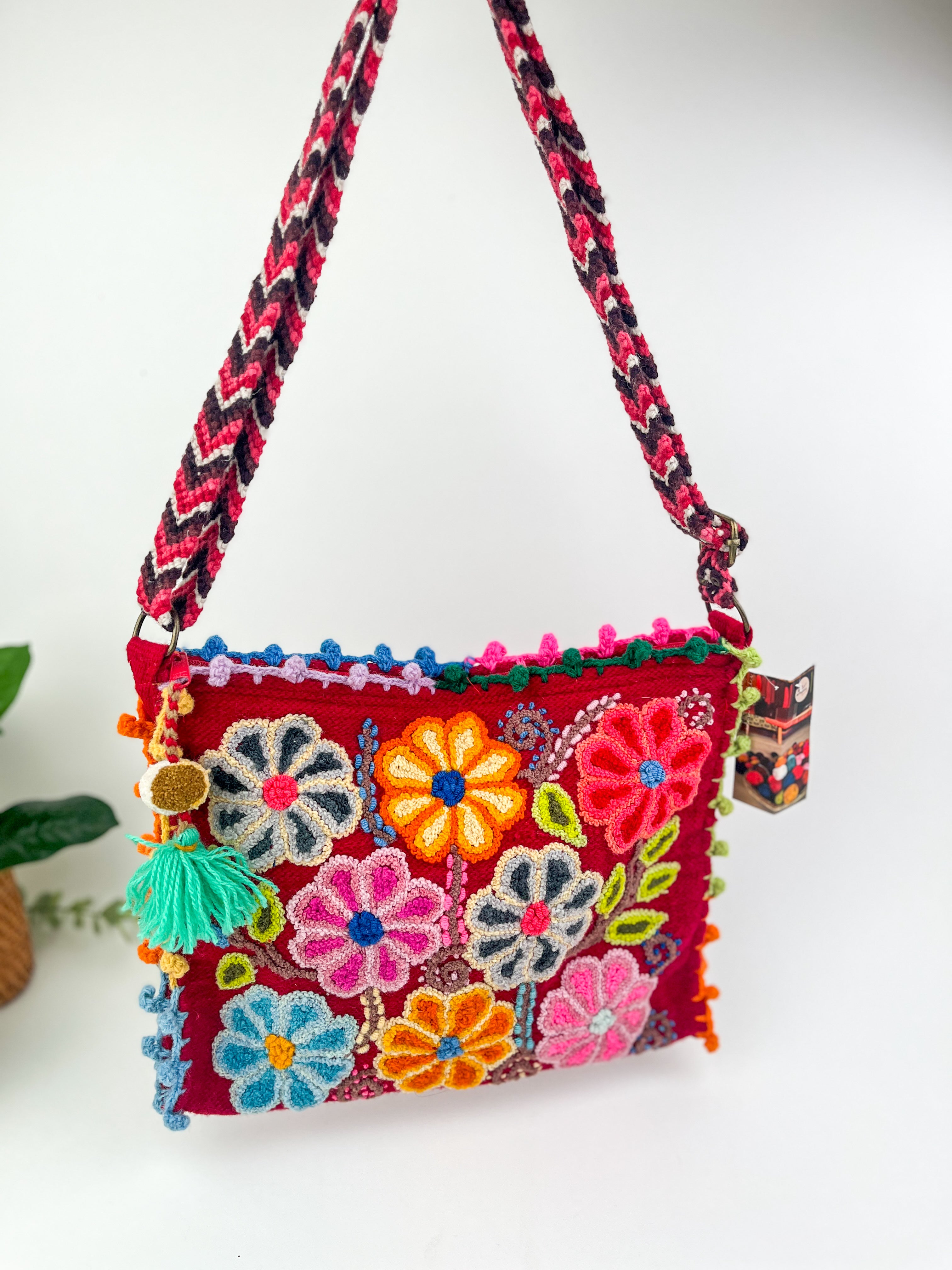 Flores Hand Embroidered Envelope Wool Purse - Ruby 50