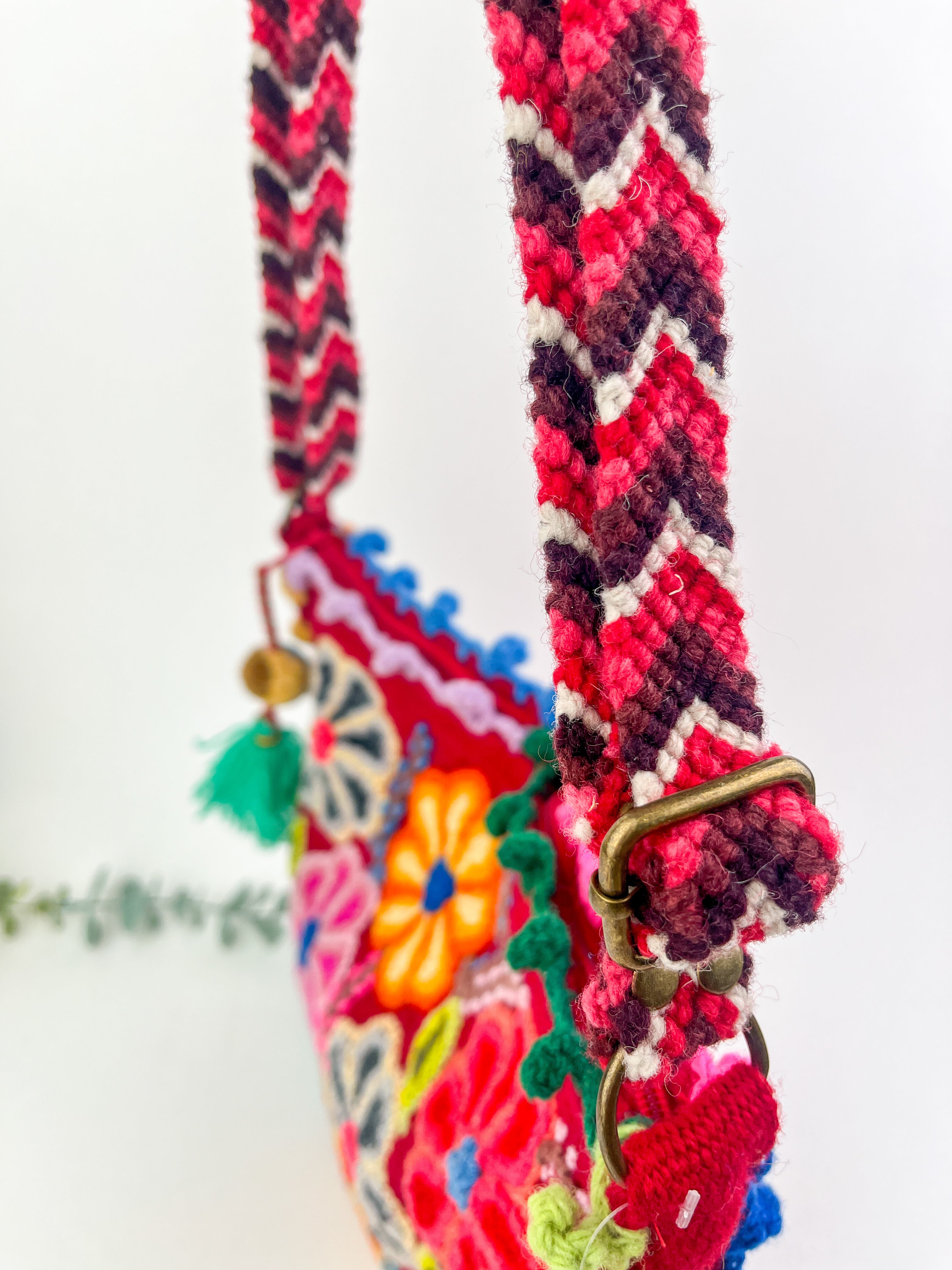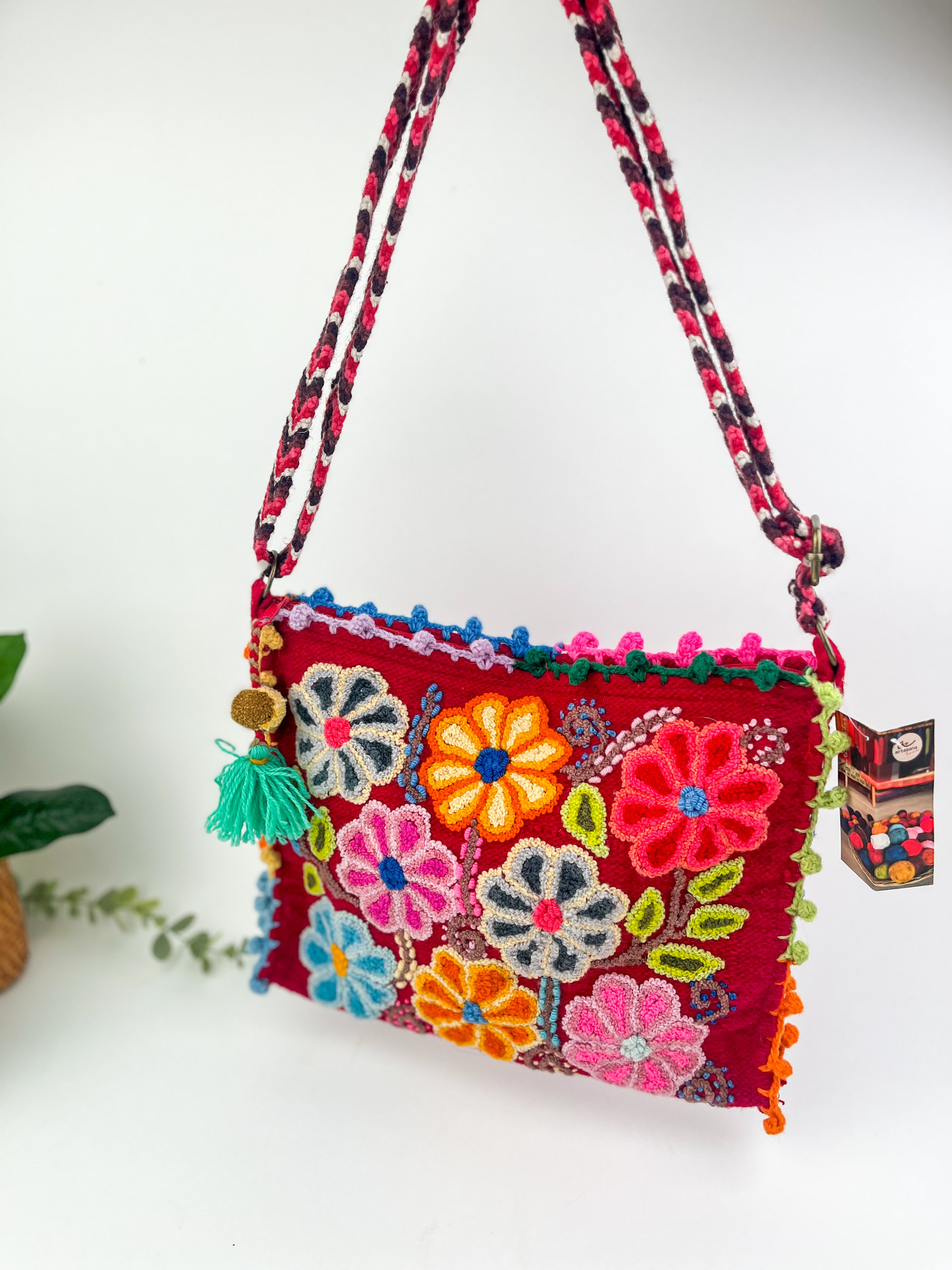 Flores Hand Embroidered Envelope Wool Purse - Red 54