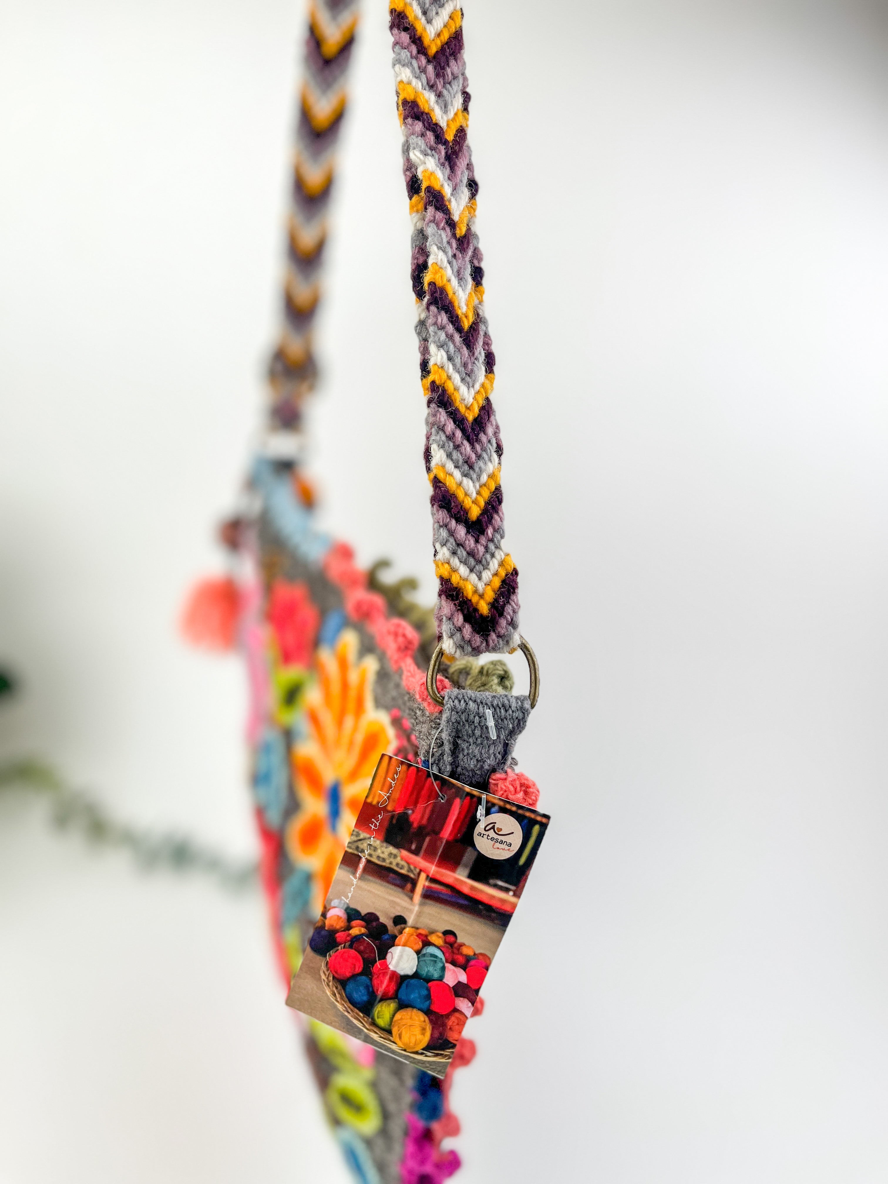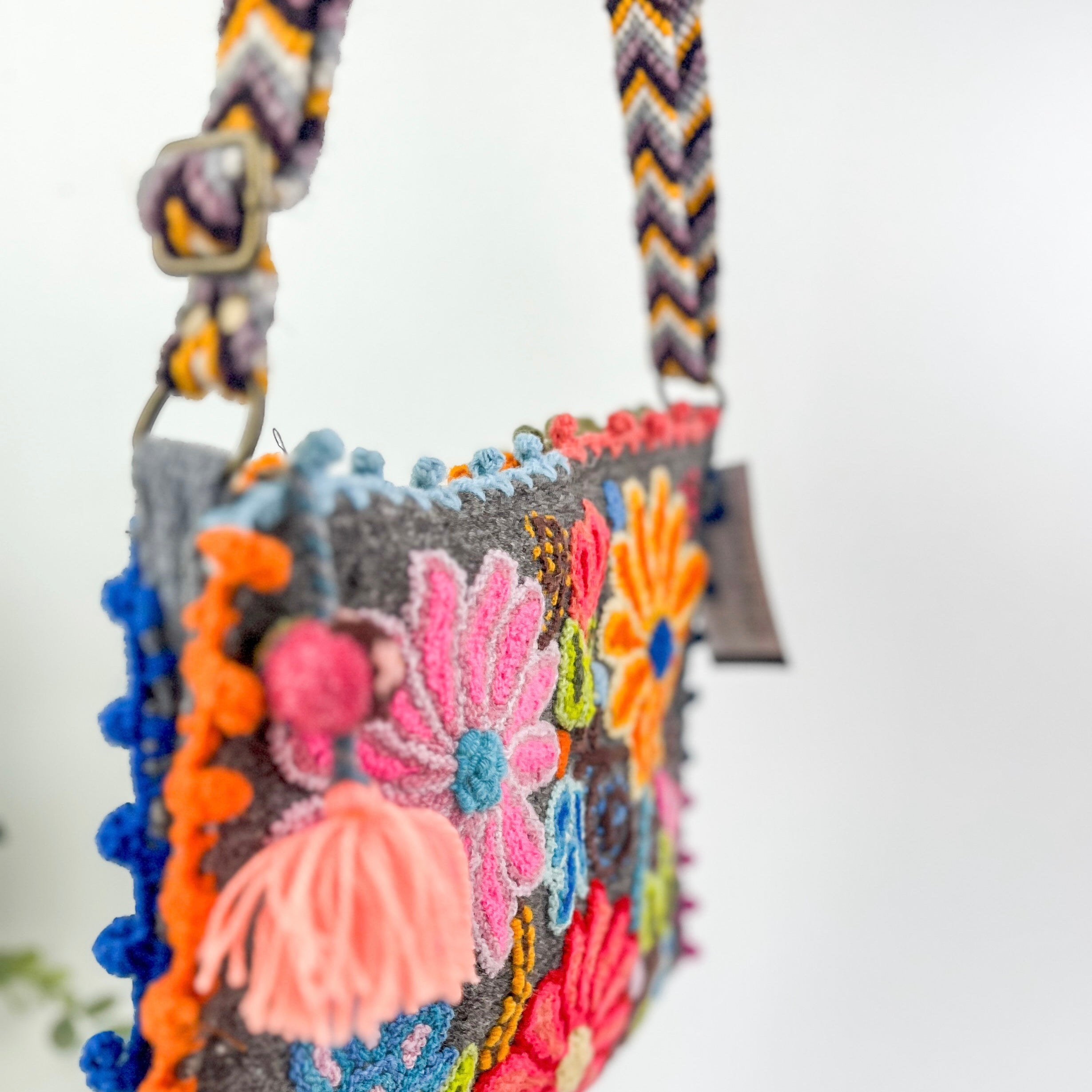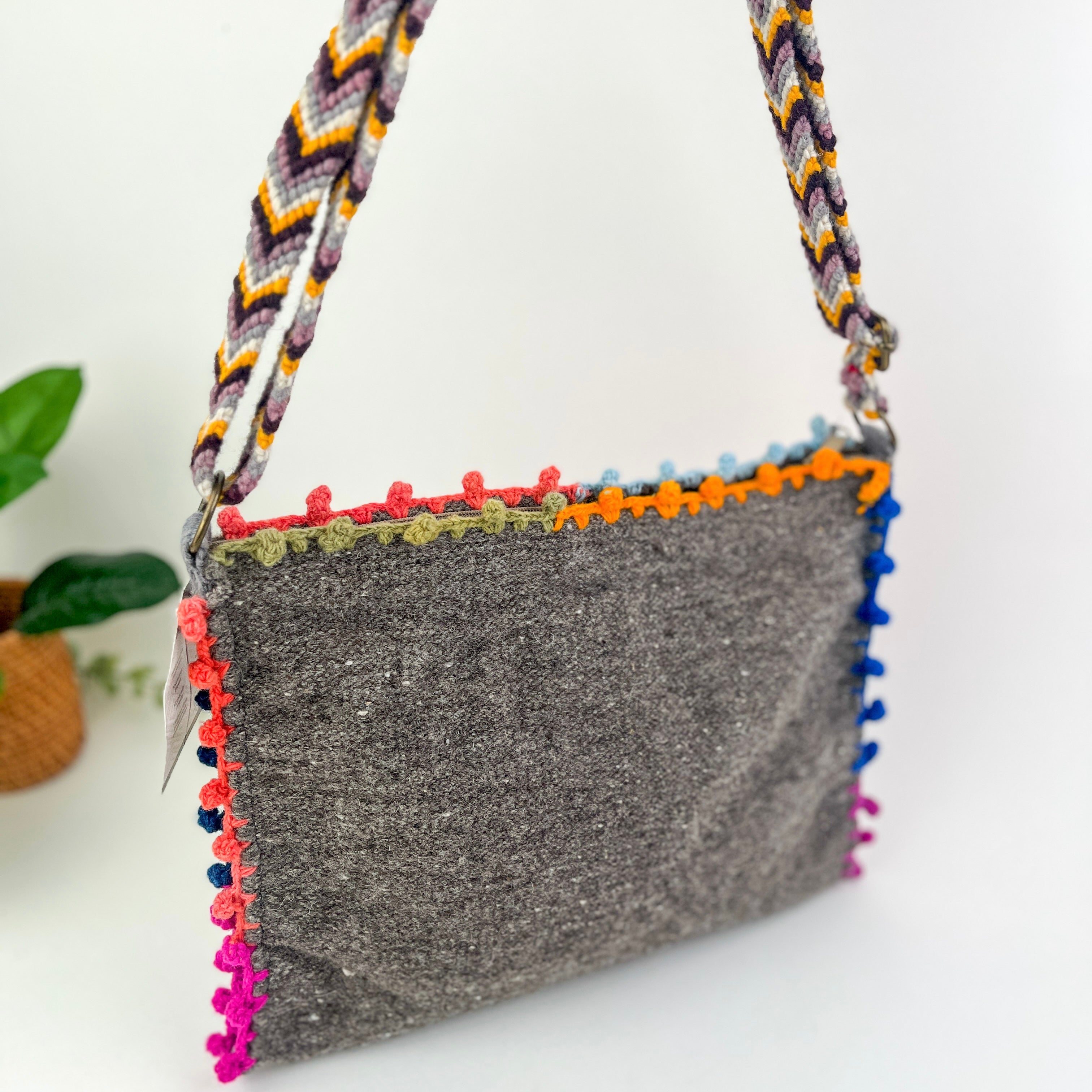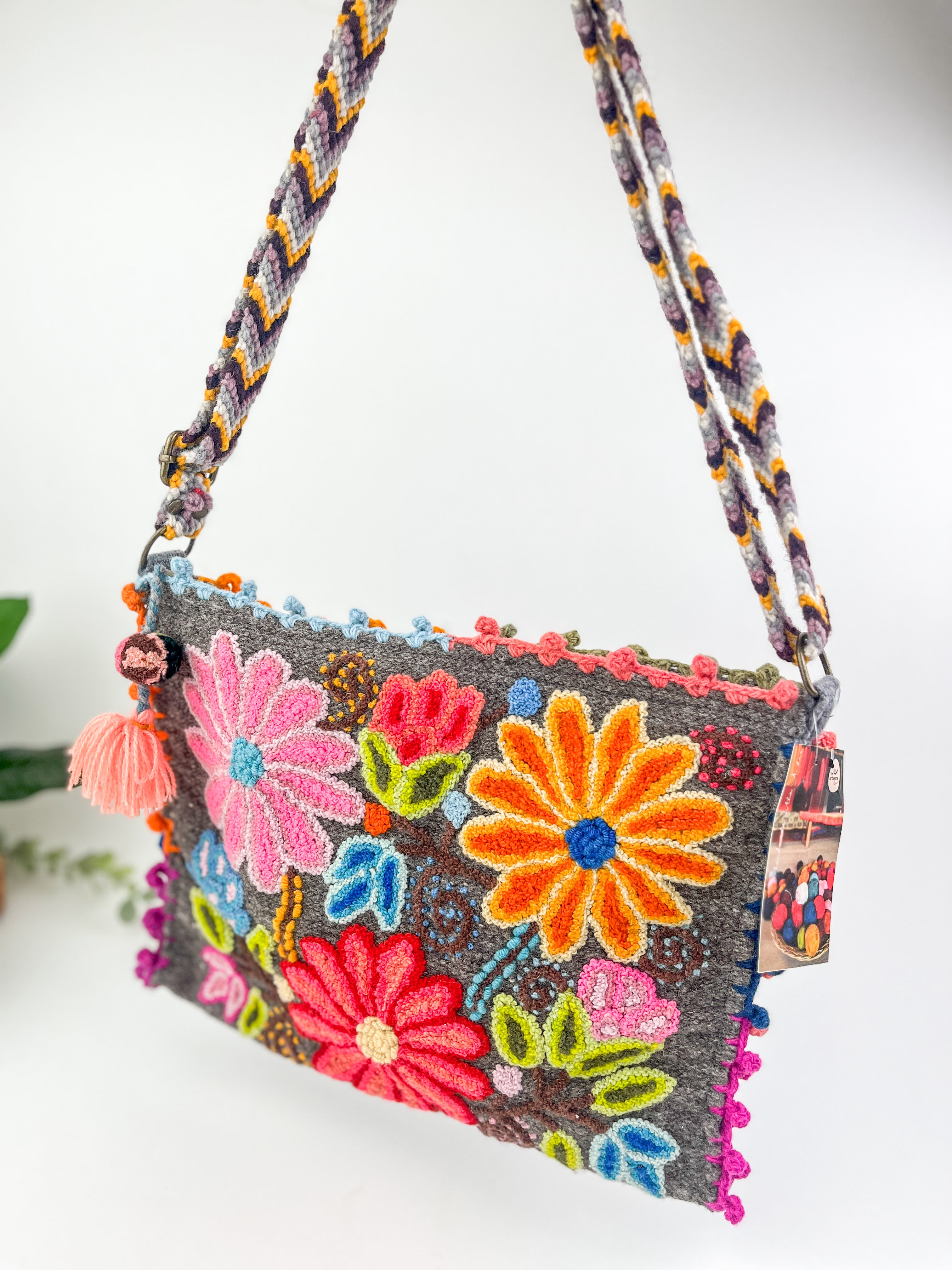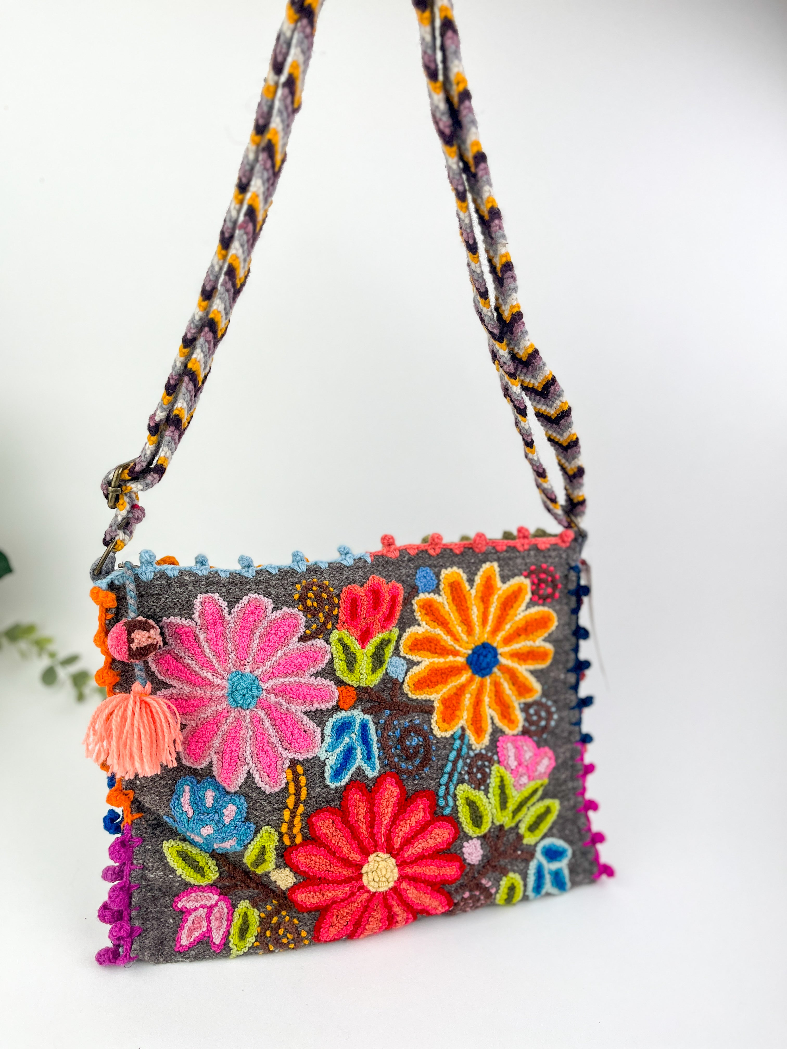 Flores Hand Embroidered Envelope Wool Purse - Gray 53