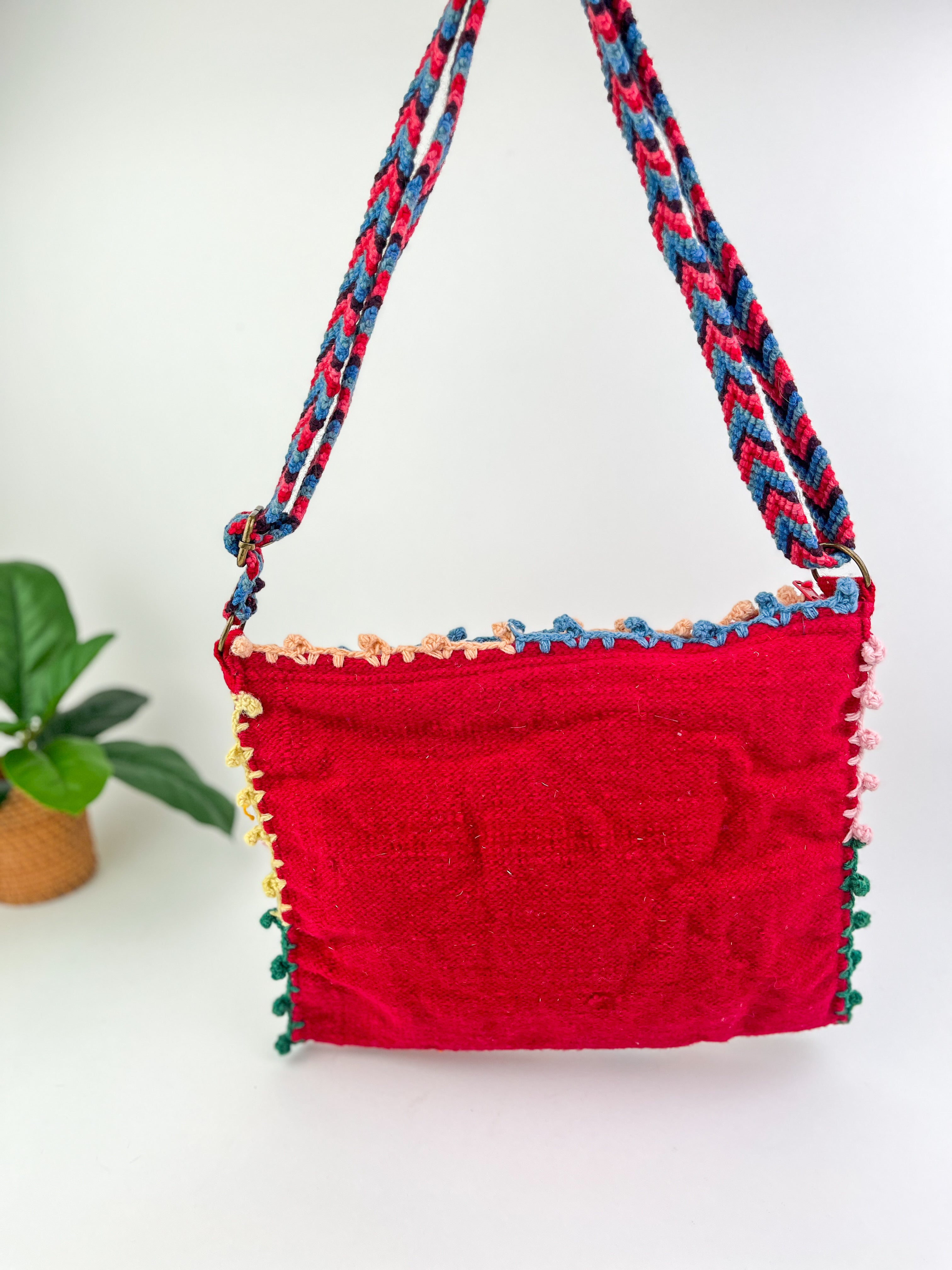Flores Hand Embroidered Envelope Wool Purse - Ruby 50