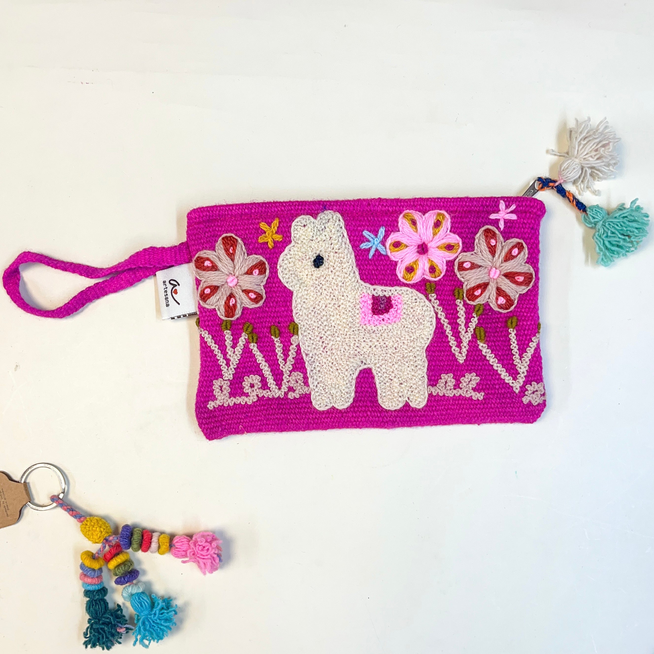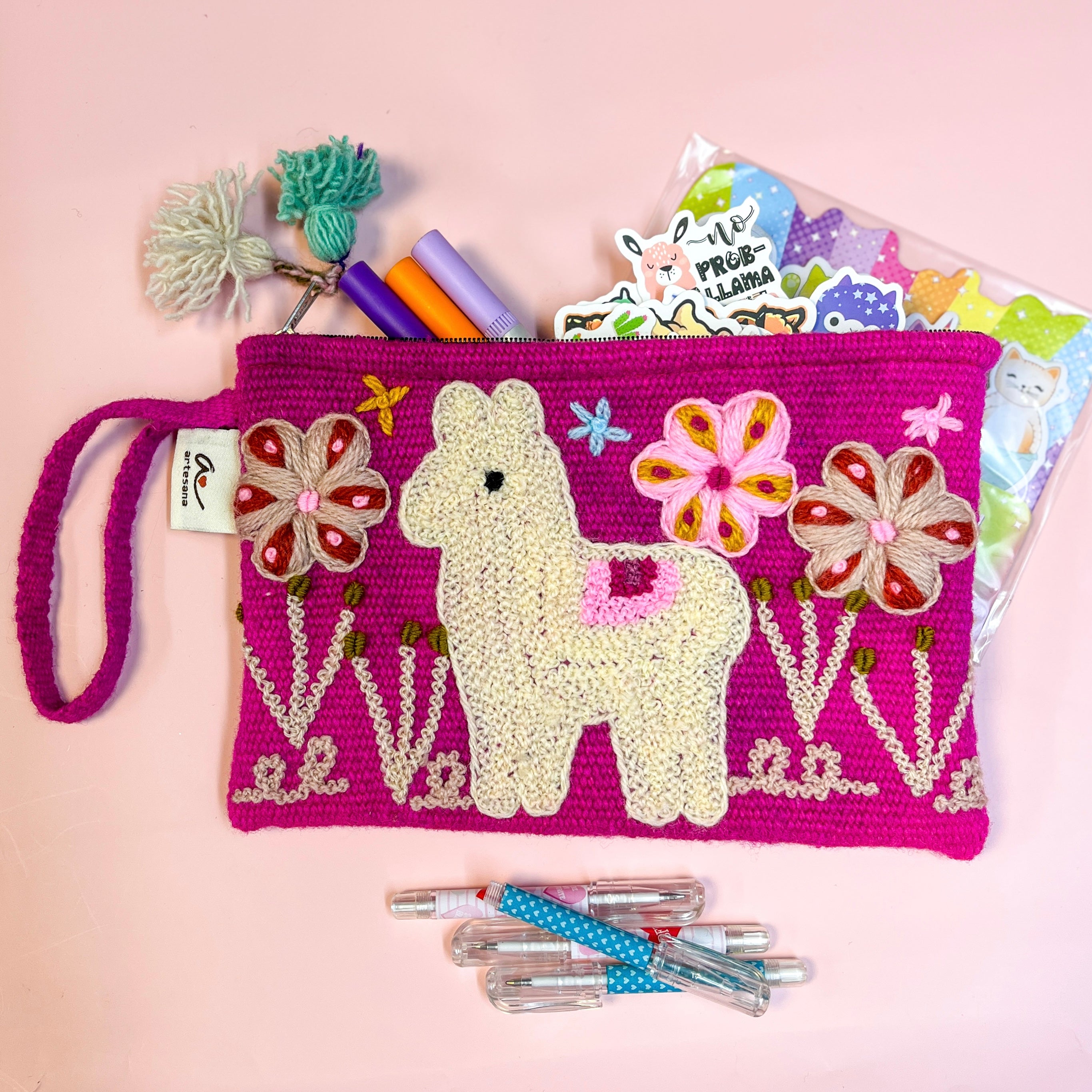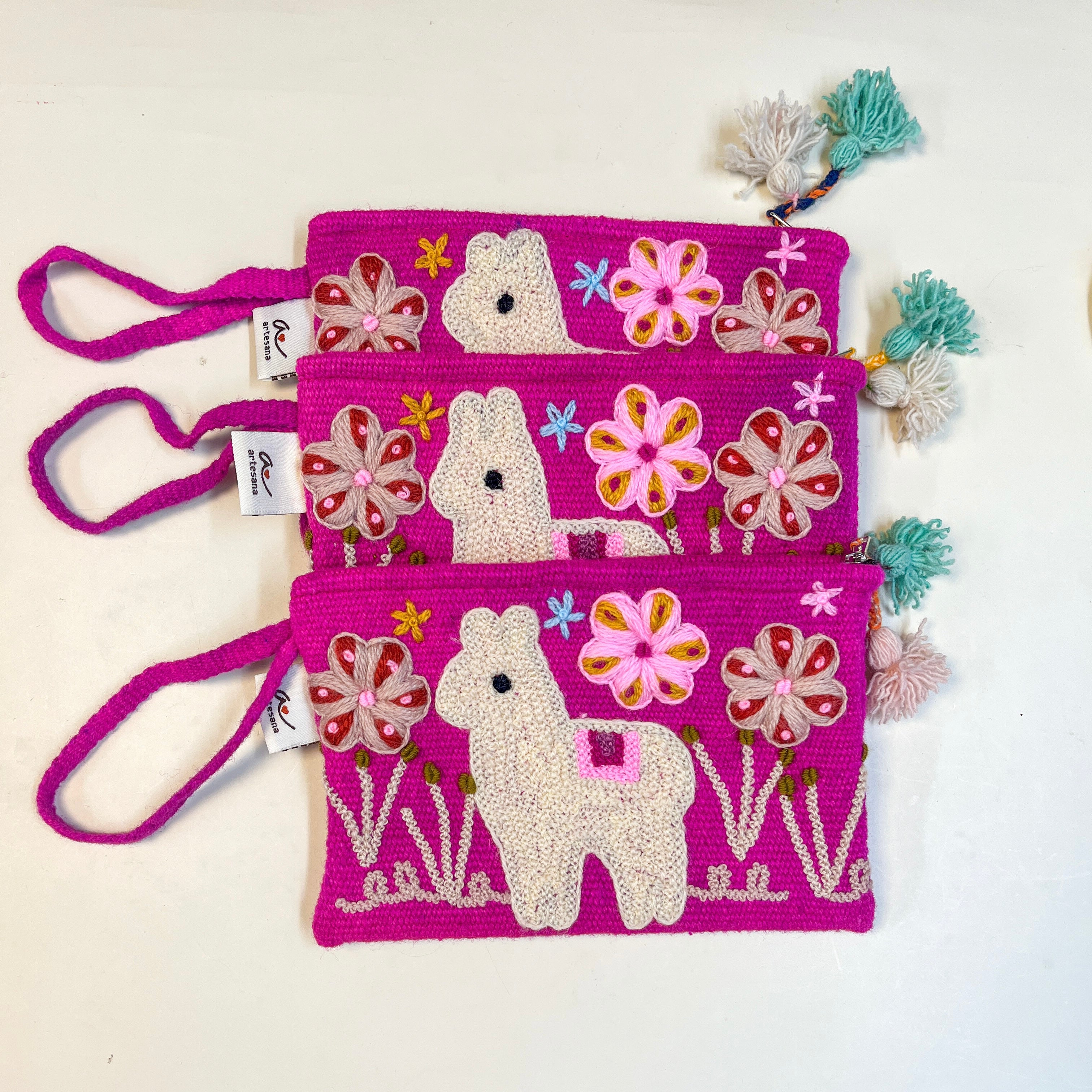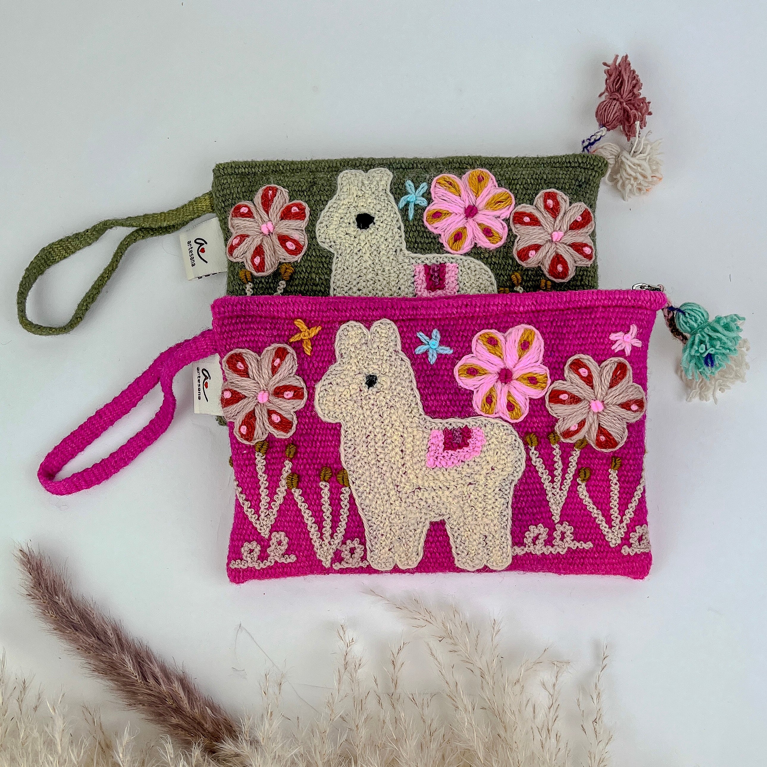 The Llama wool pouches are beautifully crafted for carrying cosmetics, brushes, school supplies, etc. It features a handle for your convenience.
