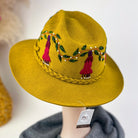 Embroidered Fedora Hat #24 Lime Green Cantuta Flowers