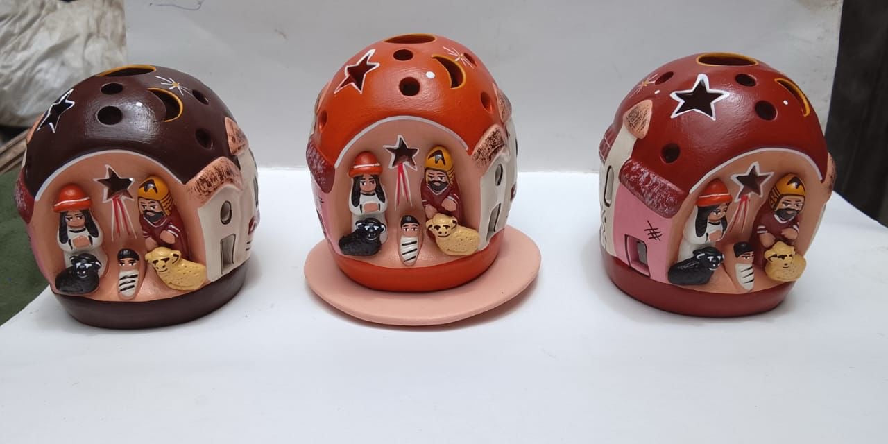 Bring the warmth and wonder of Christmas into your home with this beautifully handcrafted luminary. Each piece features a delicately sculpted Cholitos’ Nativity scene surrounded by hollow stars that let soft, flickering light shine through.