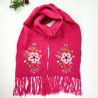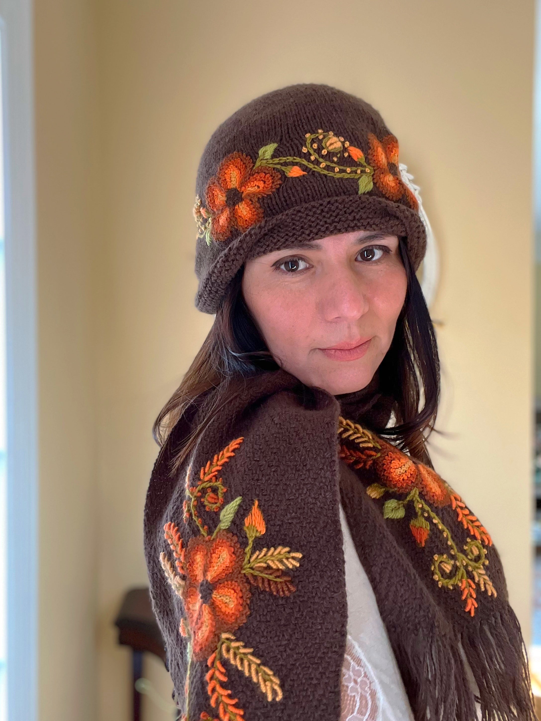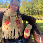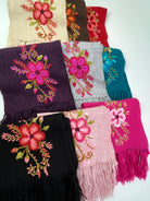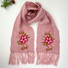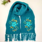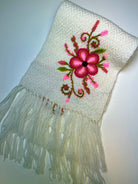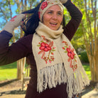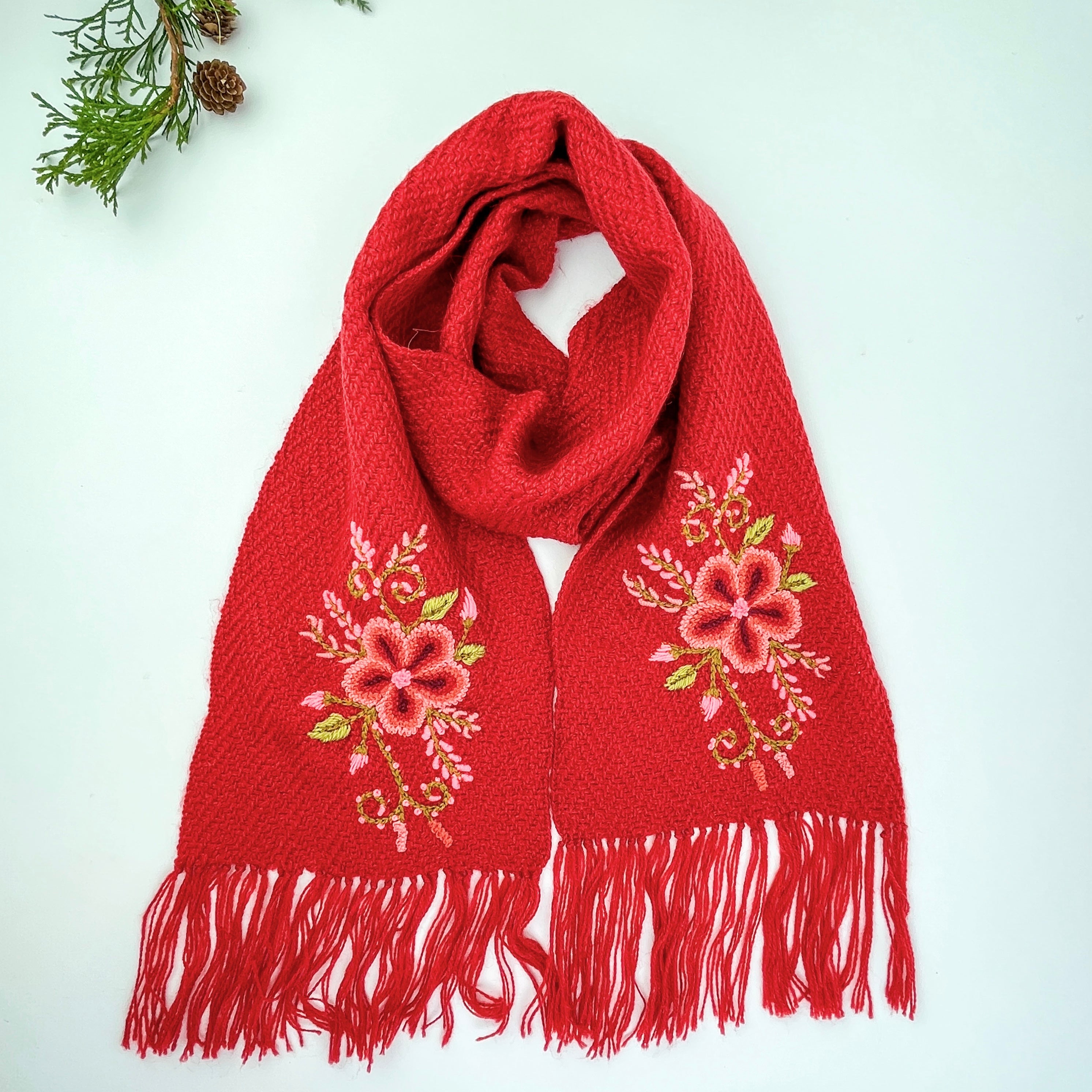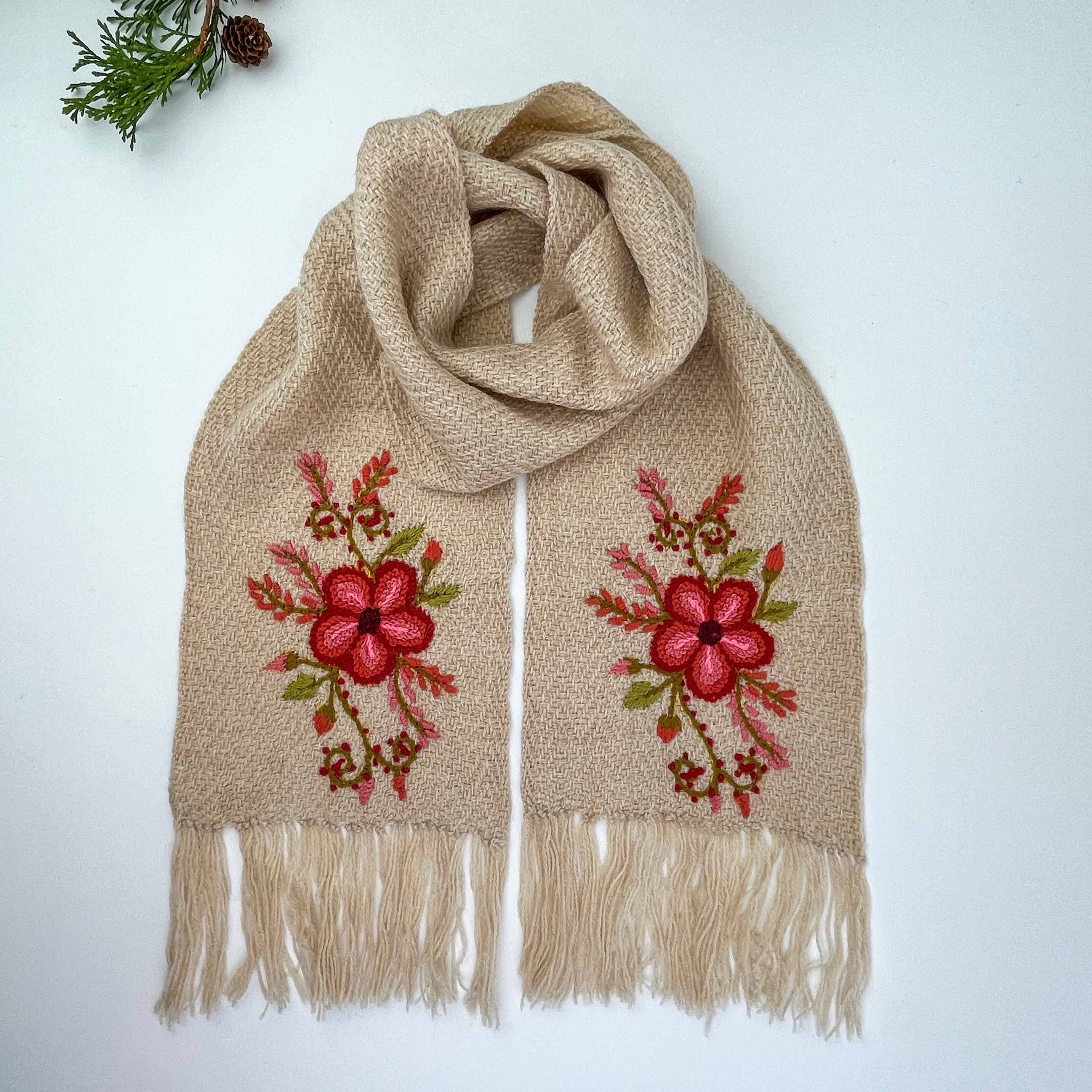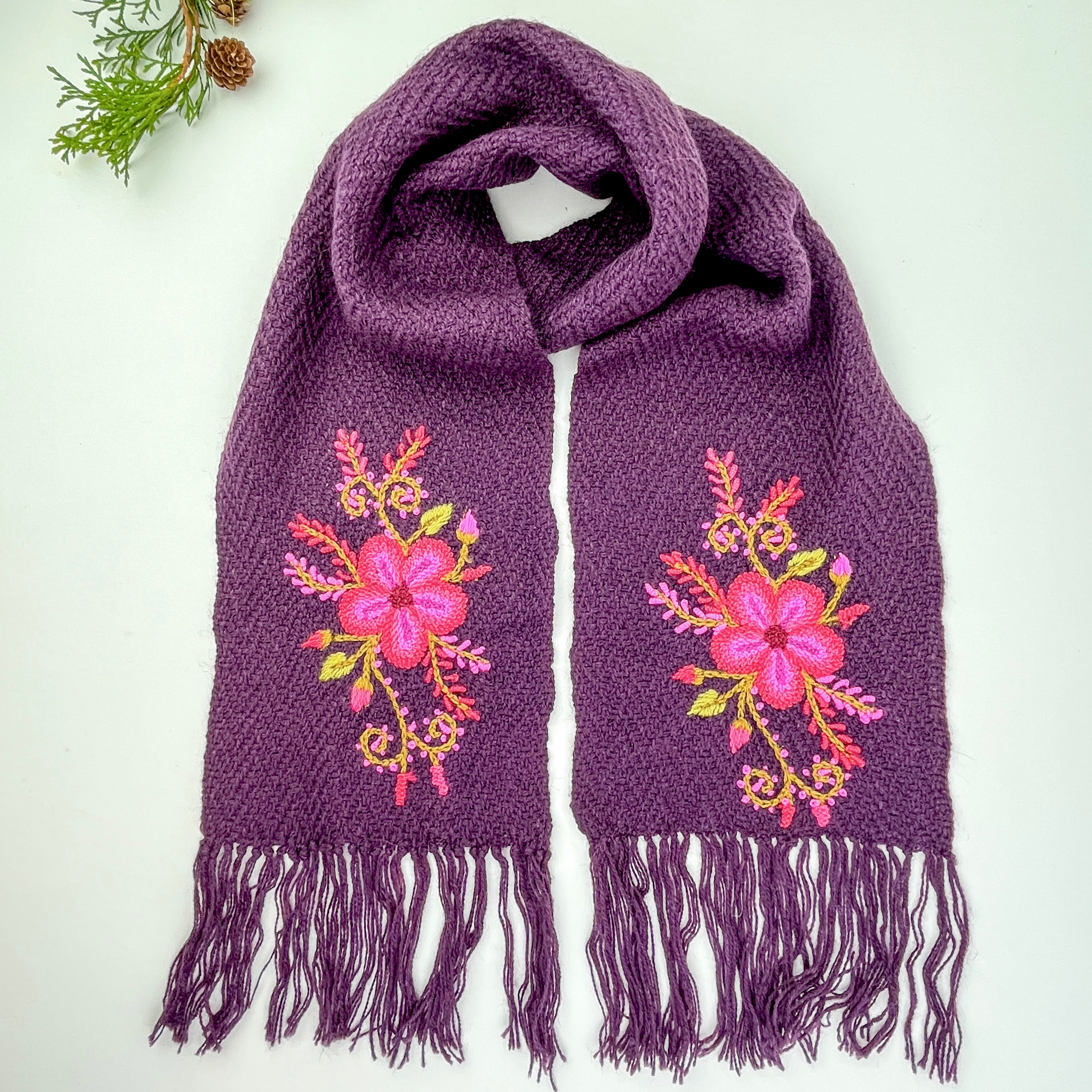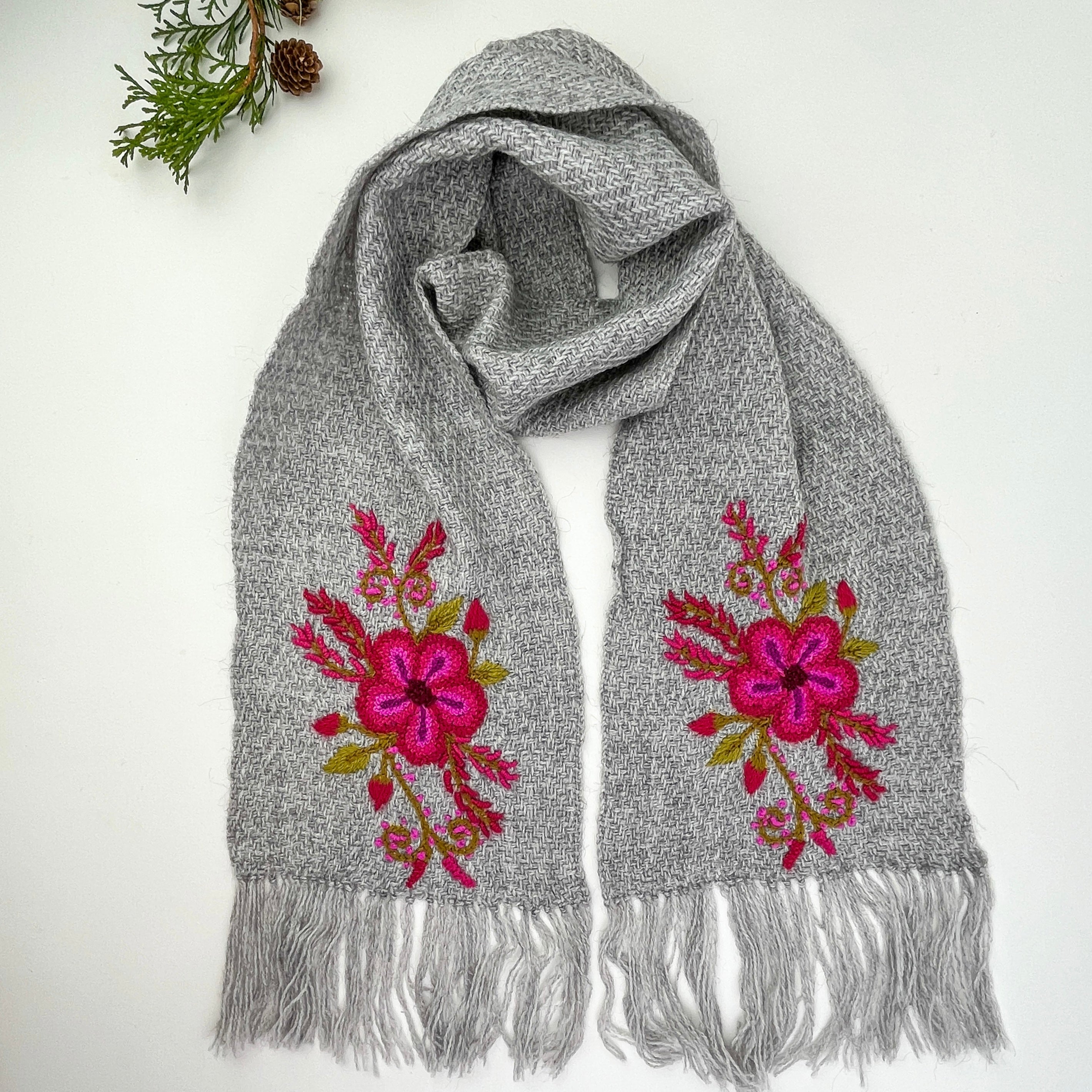 Stay cozy with the super soft Margarita Scarf, hand knitted with wool yarn, and hand embroidered with delicate floral designs! Just lovely, lightweight, and it will keep you really warm.