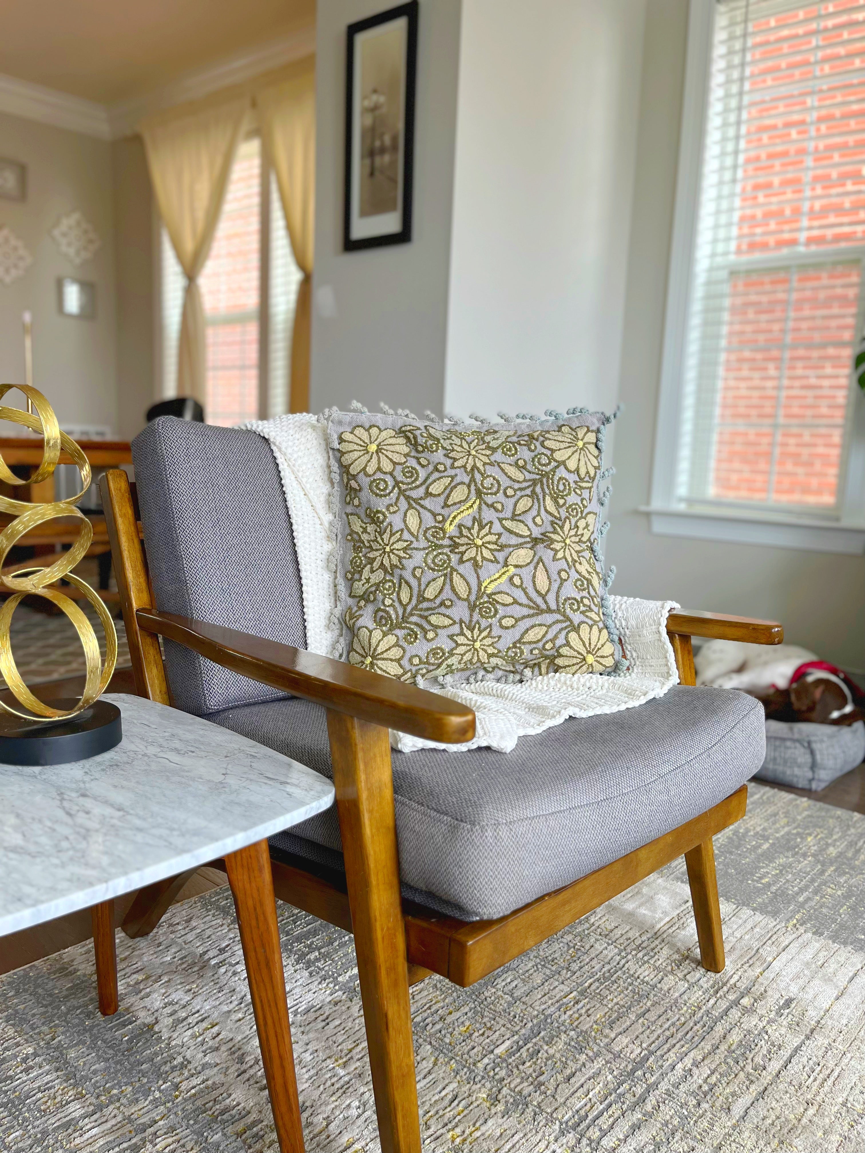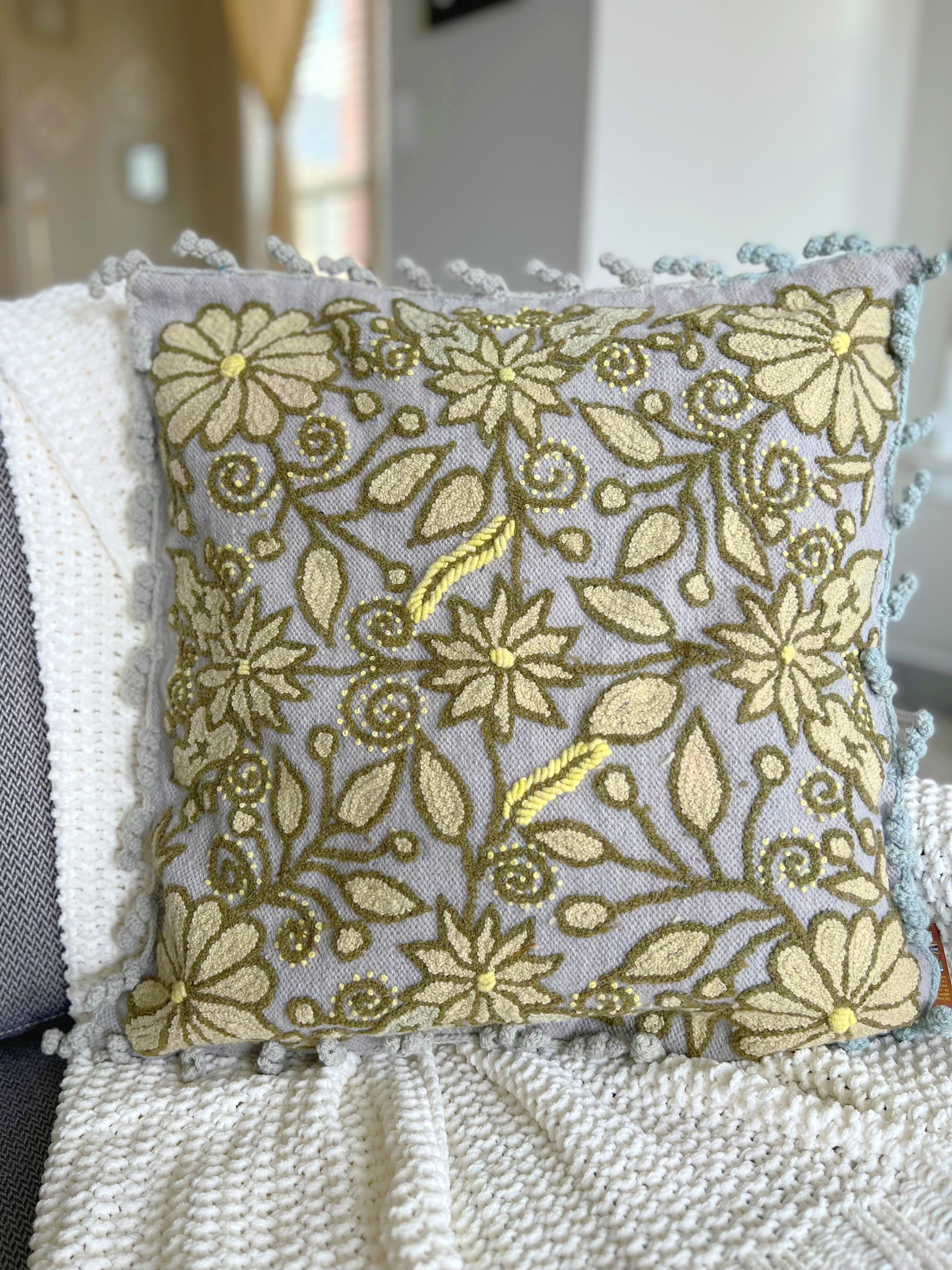 Diosa Floral Embroidery Wool Pillowcase: Sage