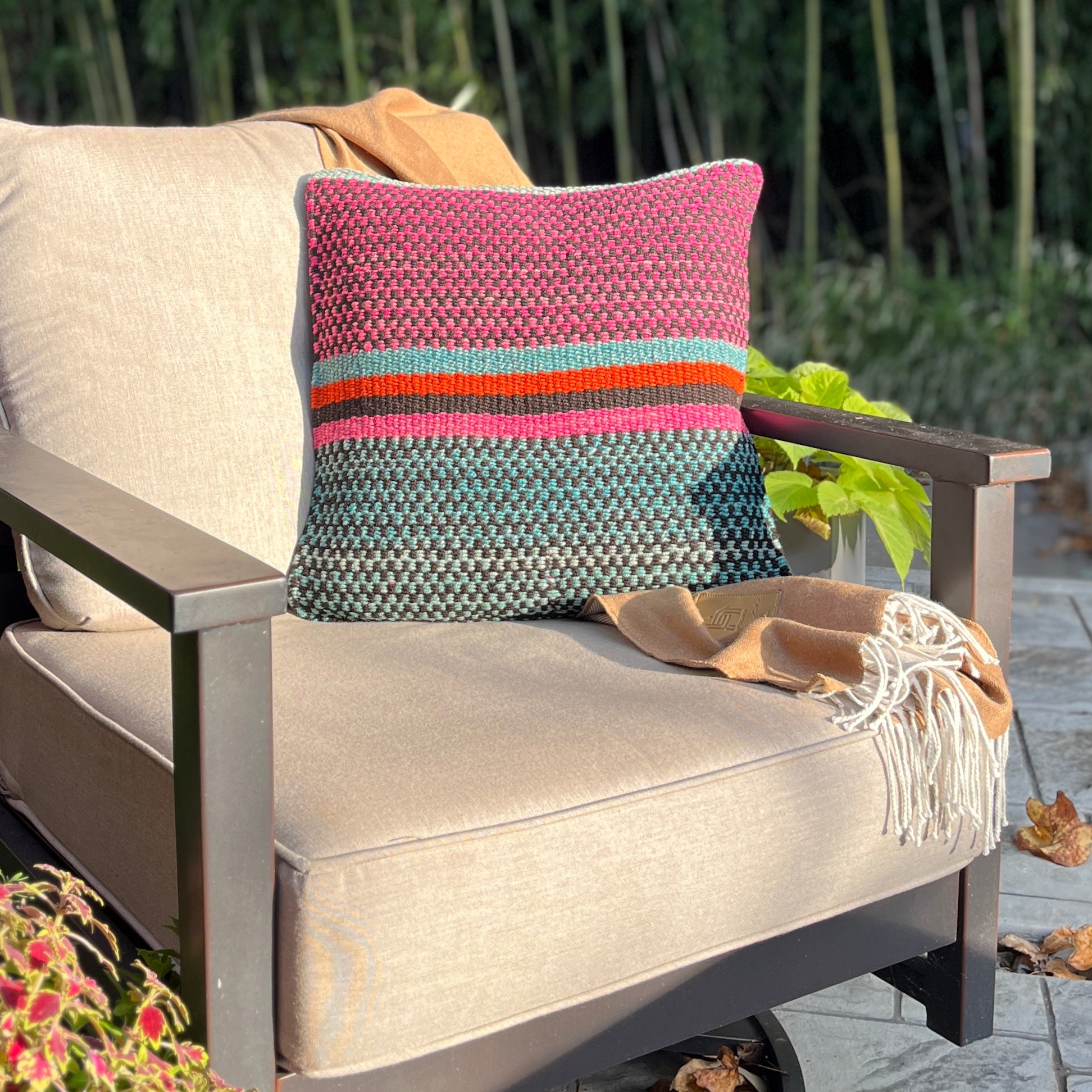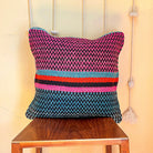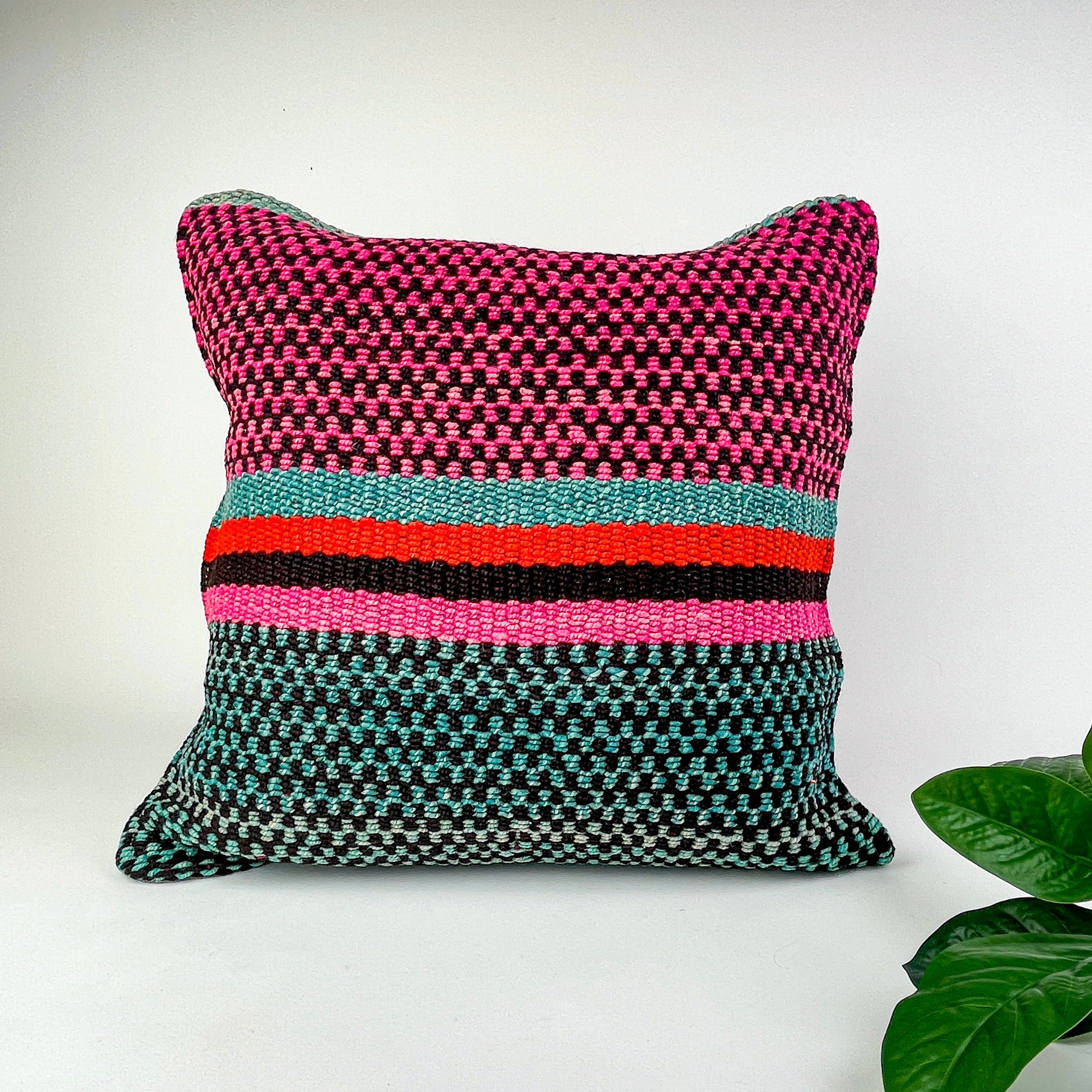 Handwoven Wool Pillow Cover 63 : (18x18) Pink Teal, Boho Home Decor