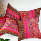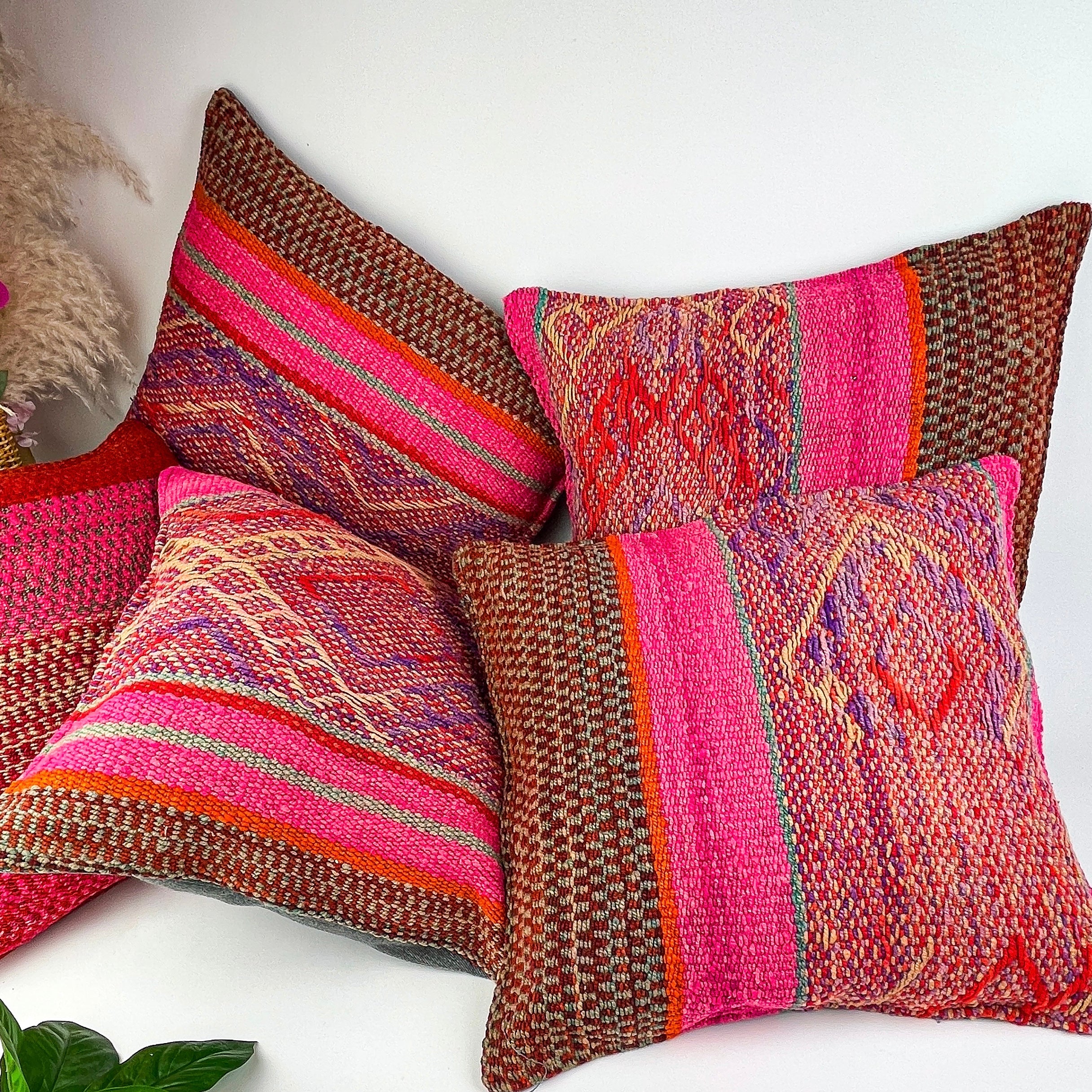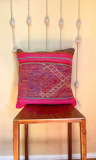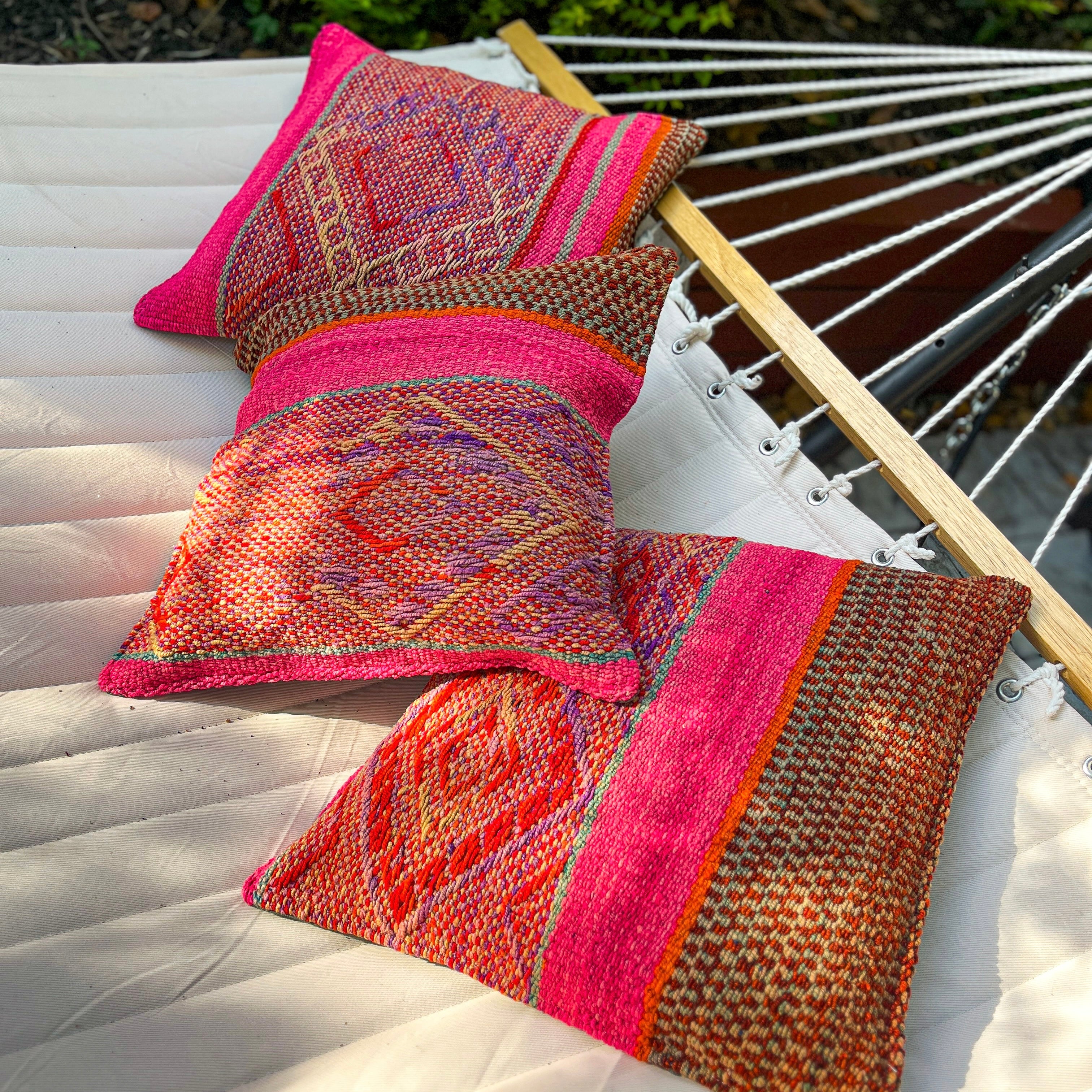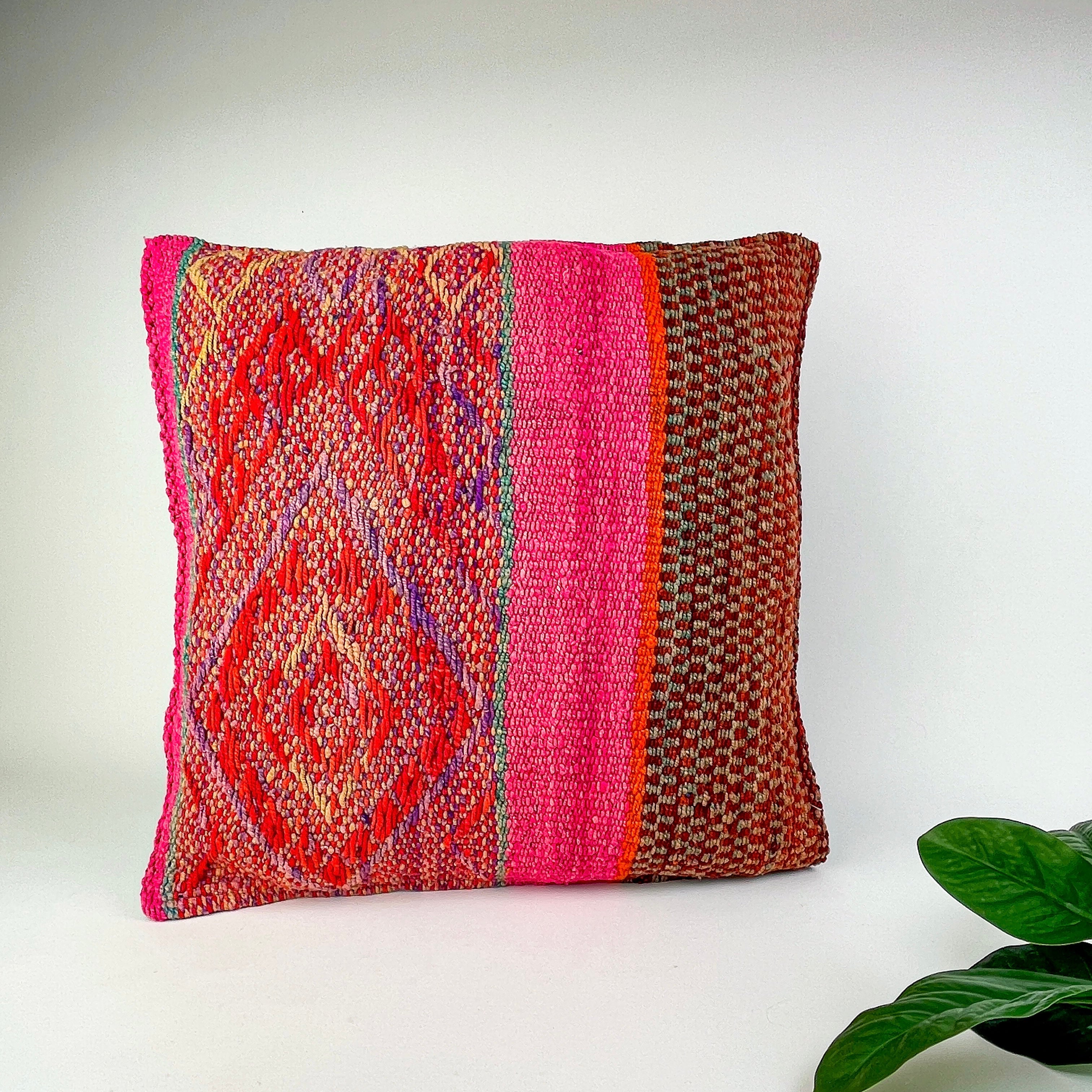 Handwoven Wool Pillow Cover 64 : (18x18) Hot Pink Brown, Boho Home Decor