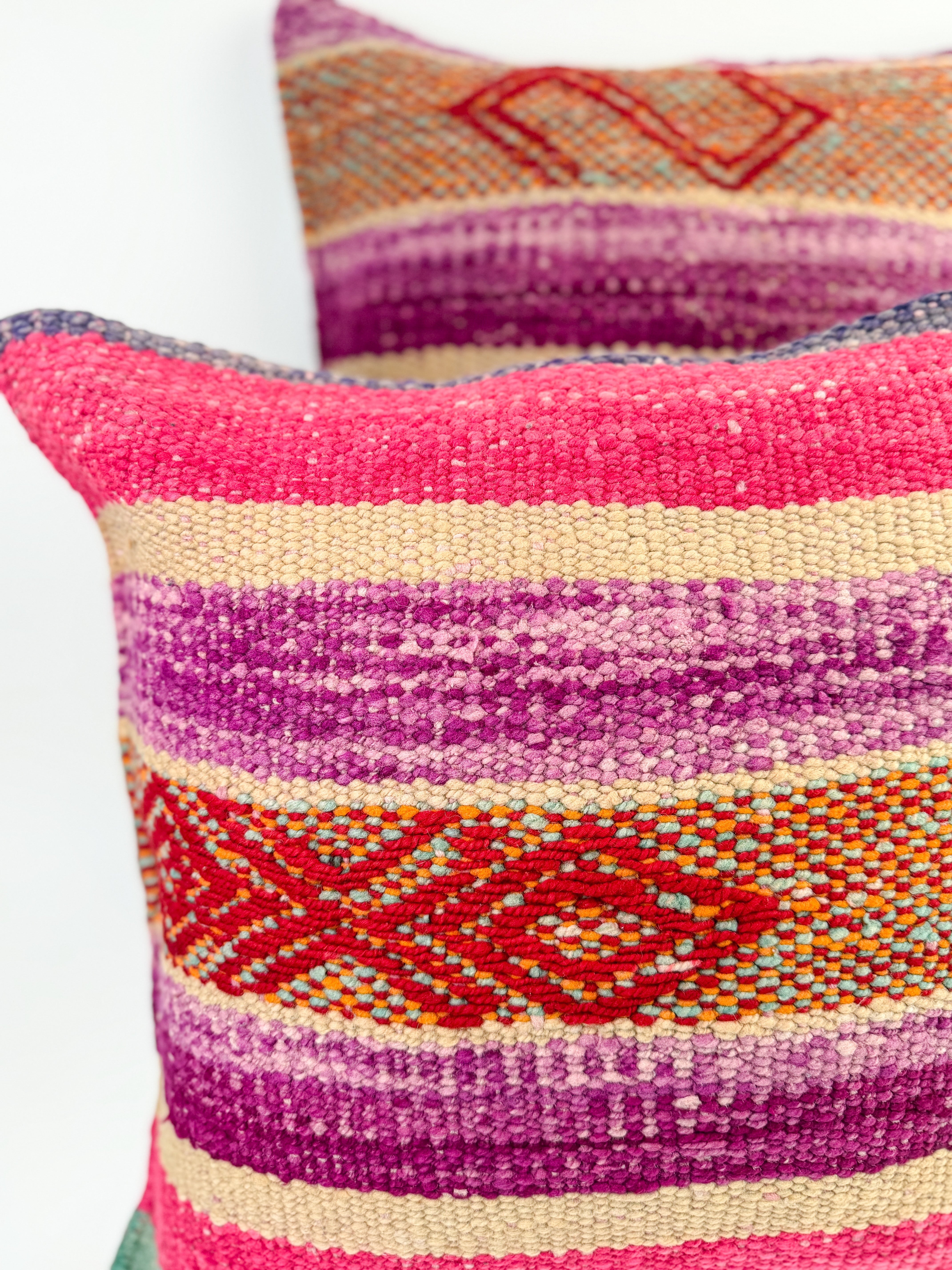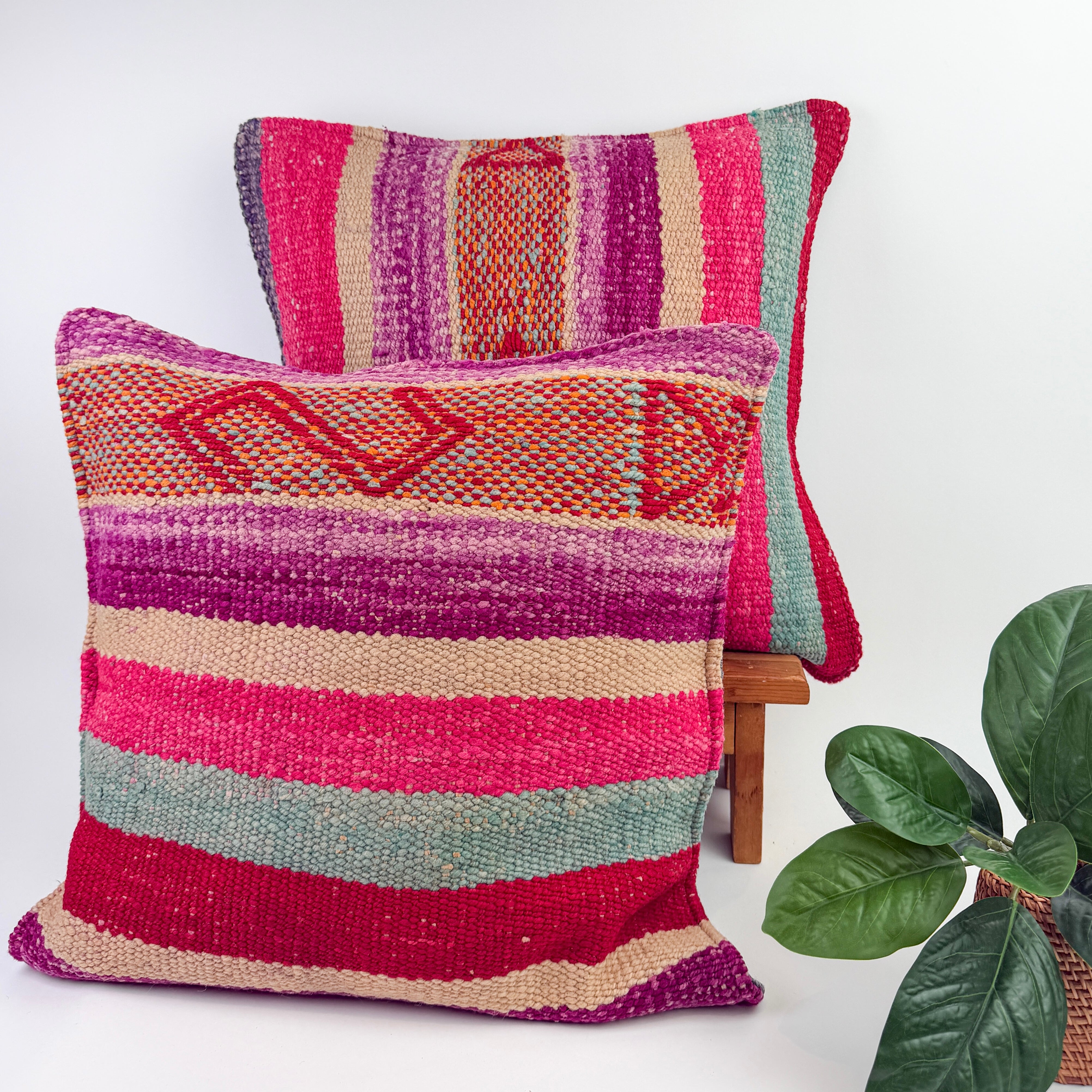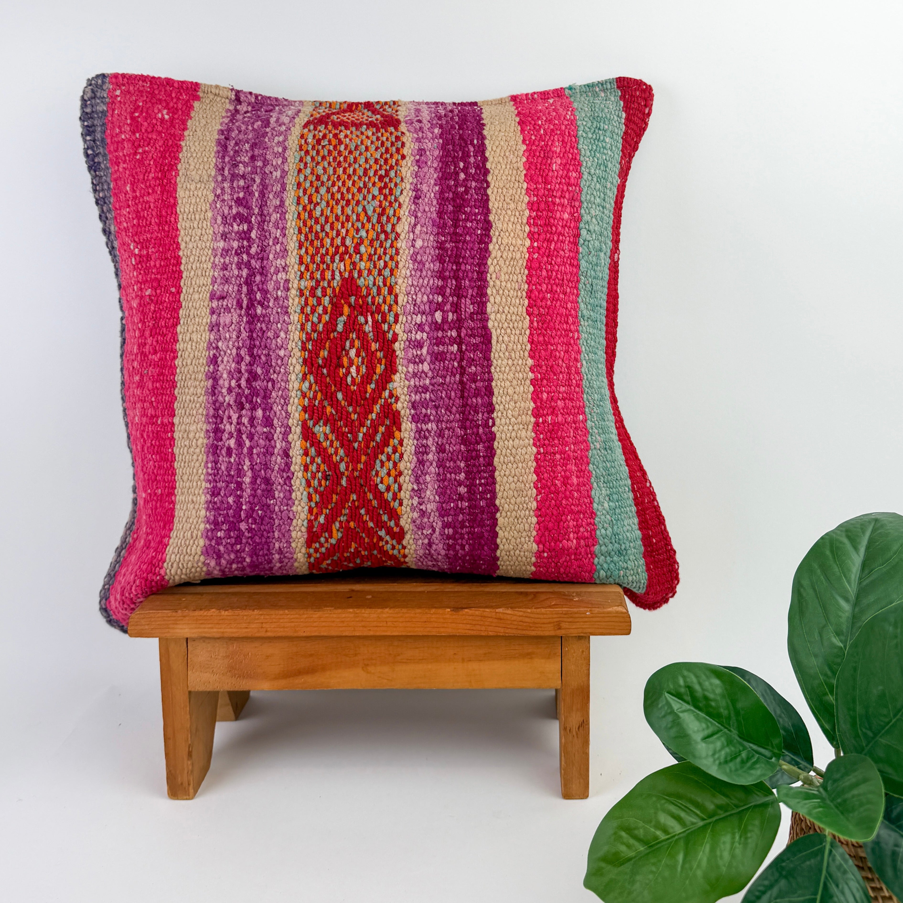 Handwoven Wool Pillow Cover 67: (18x18)Red Purple Boho Home Decor