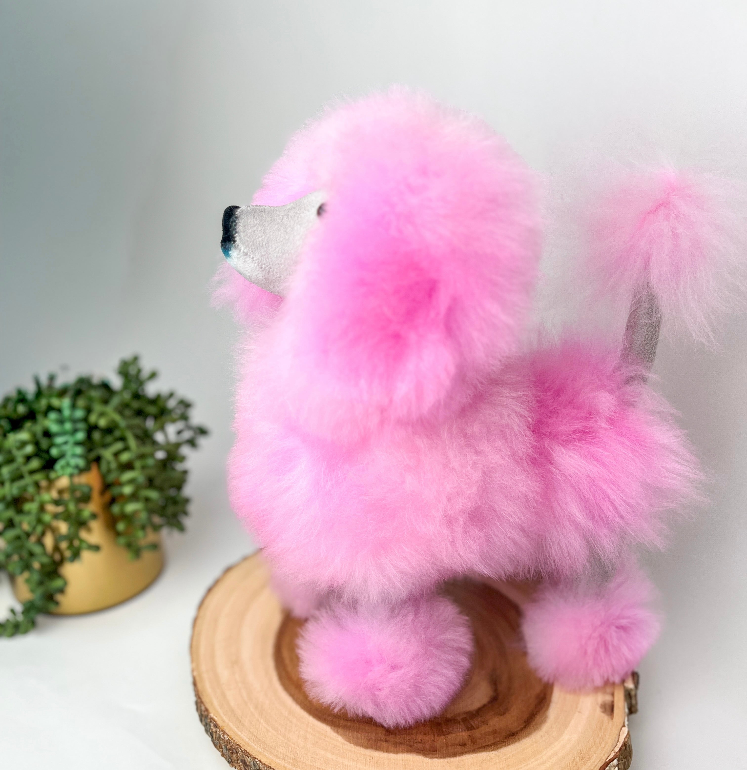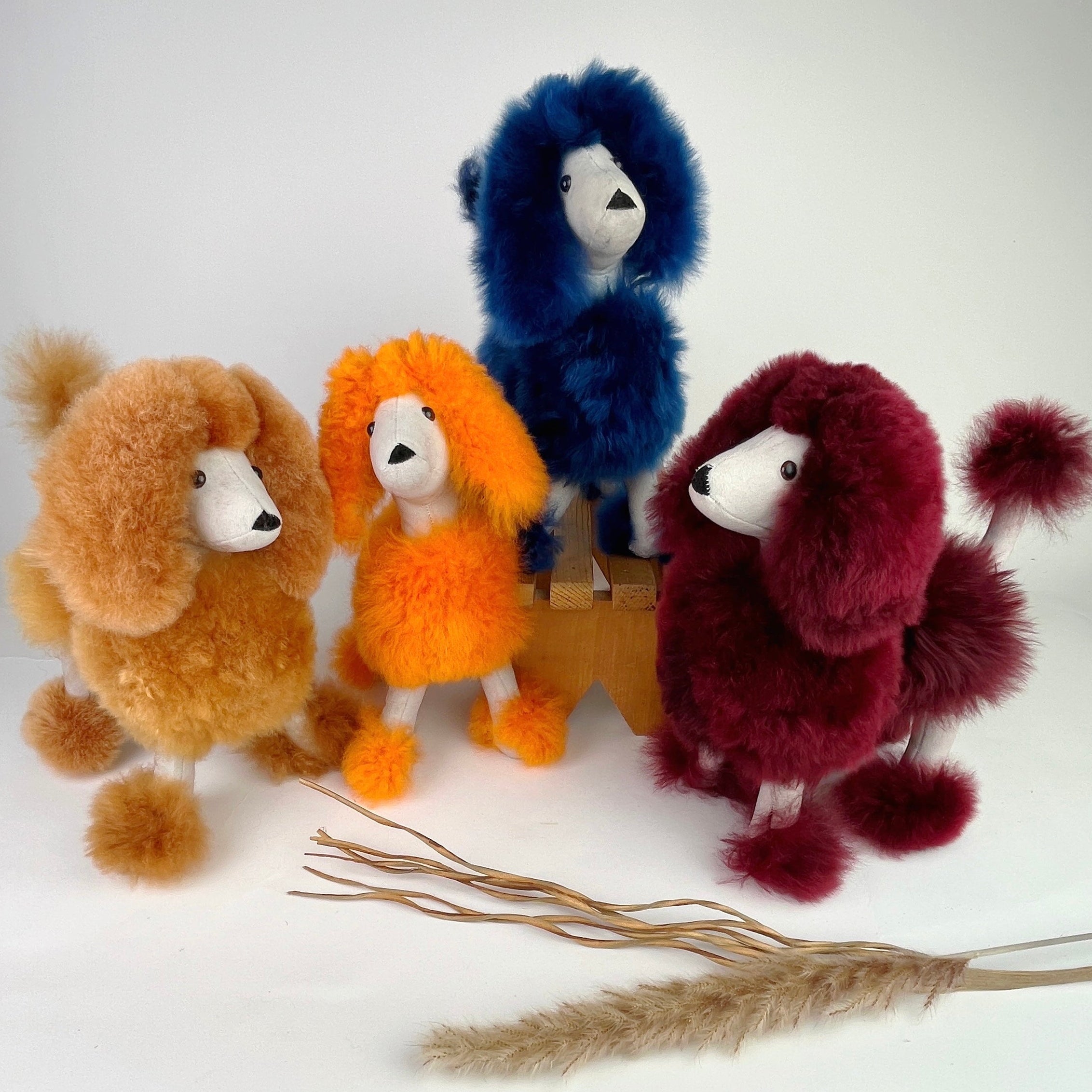 Full of love, this fluffy poodle is just pure softness. Handcrafted with genuine alpaca fur, this adorable dog is so easy to hug all day! Alpaca fiber is hypoallergenic.