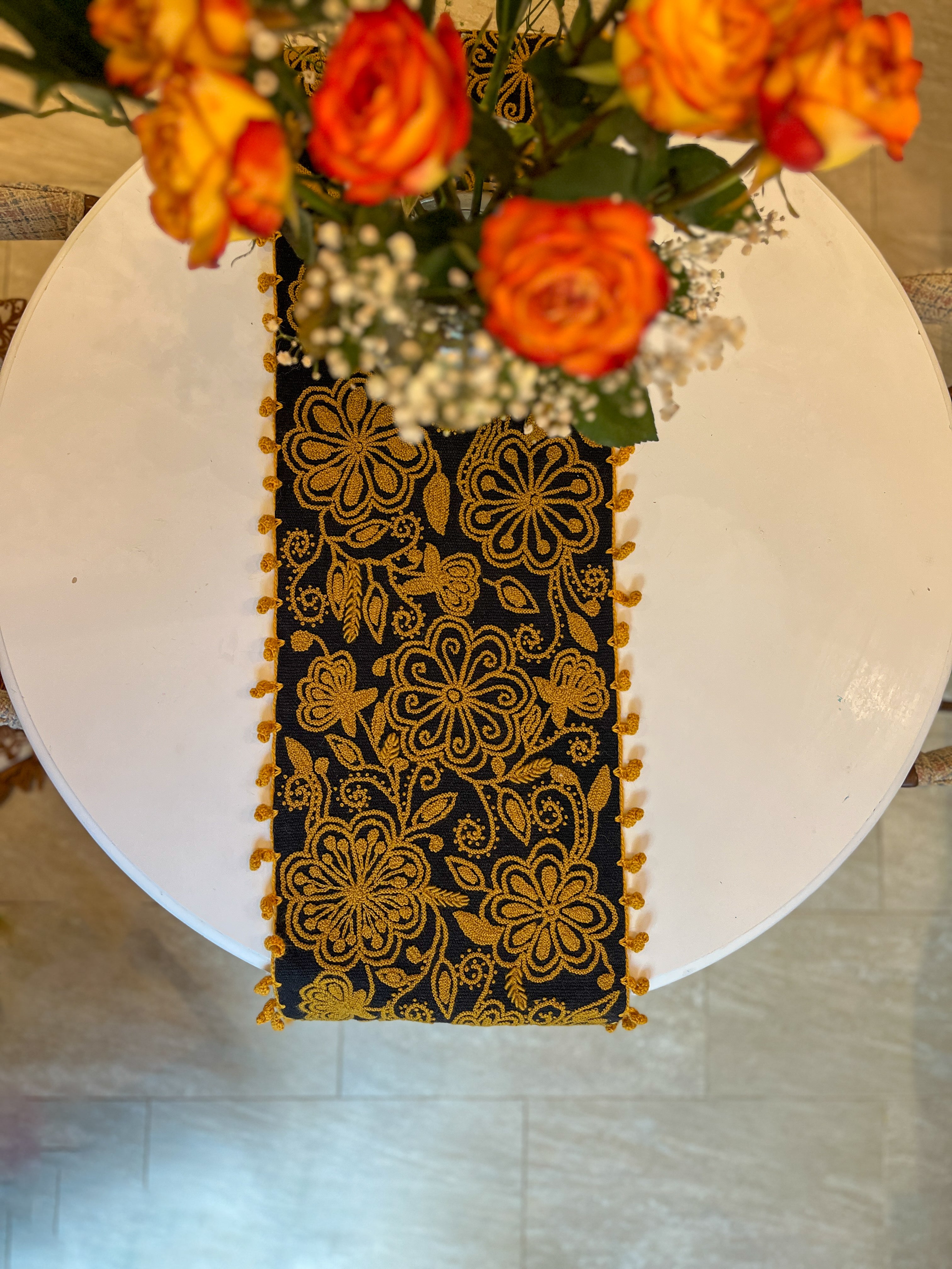 Flora Hand-embroidered Runner - Black Gold