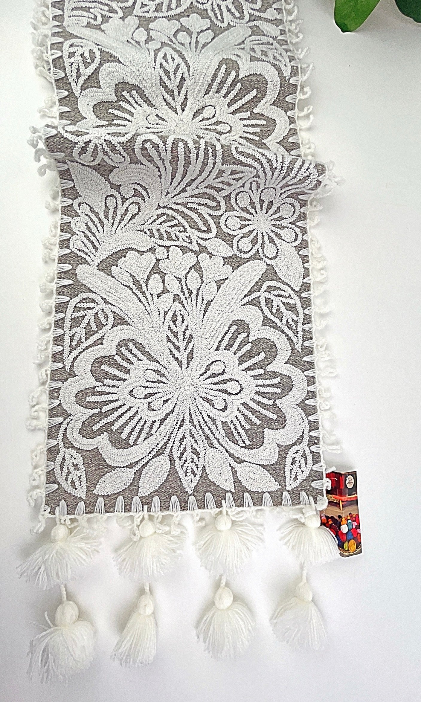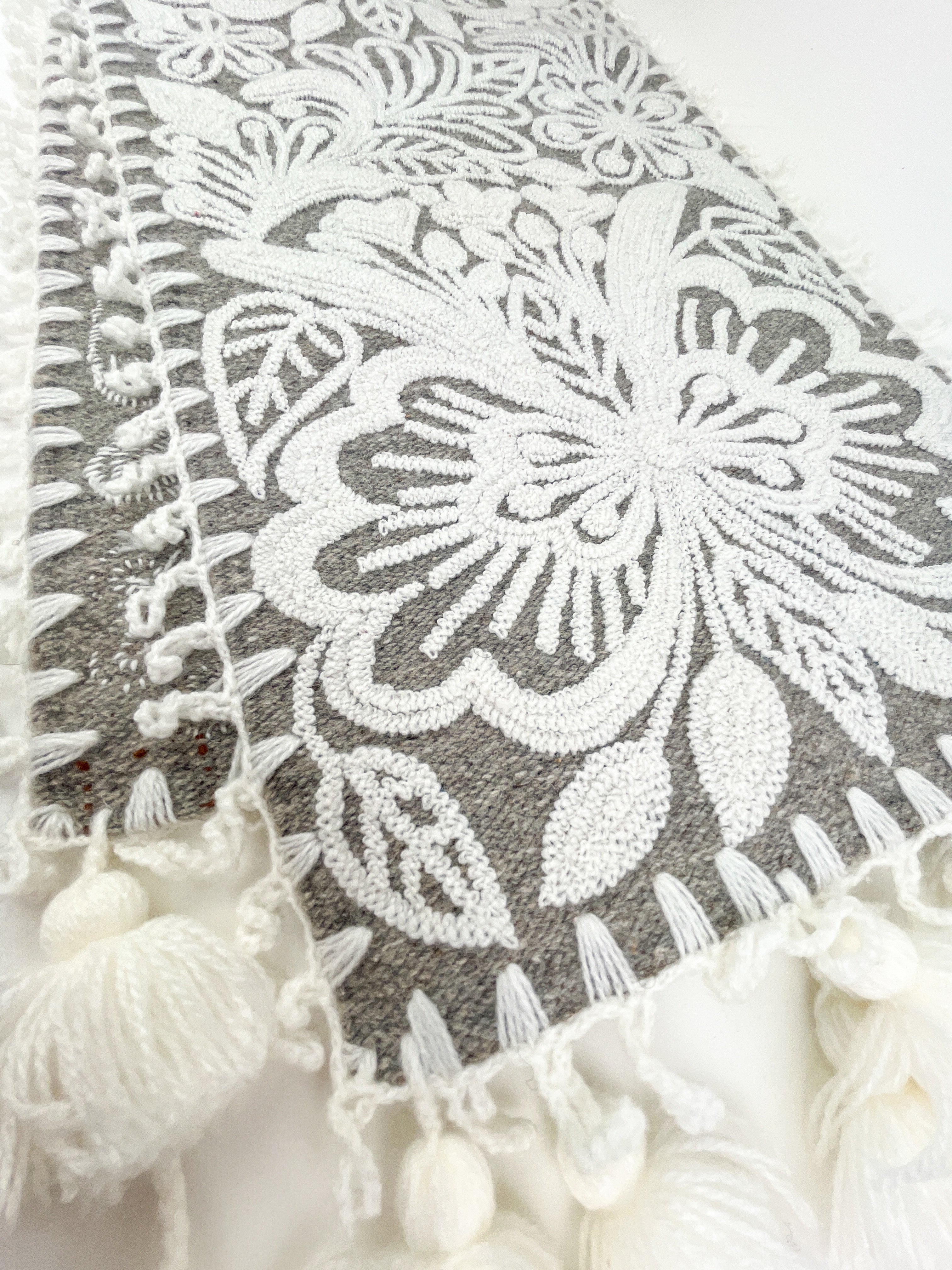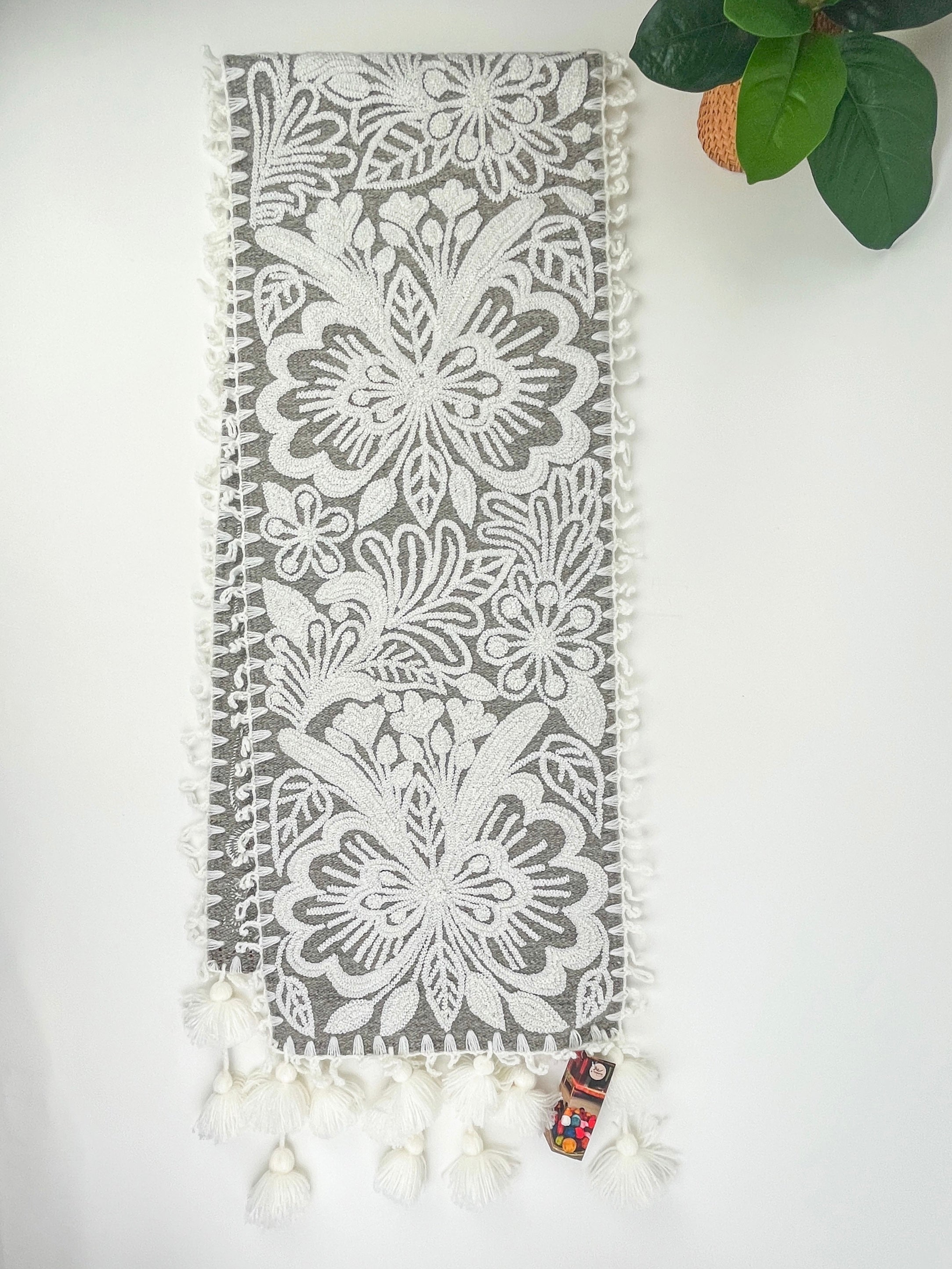 Flora Hand-embroidered Runner - Gray White