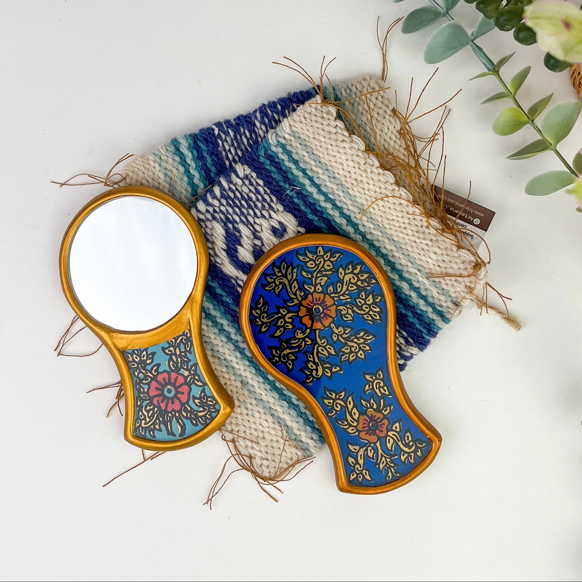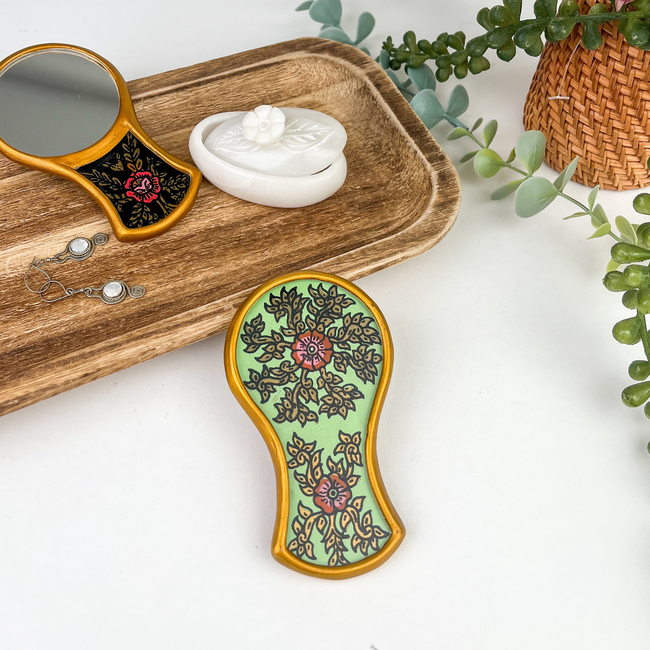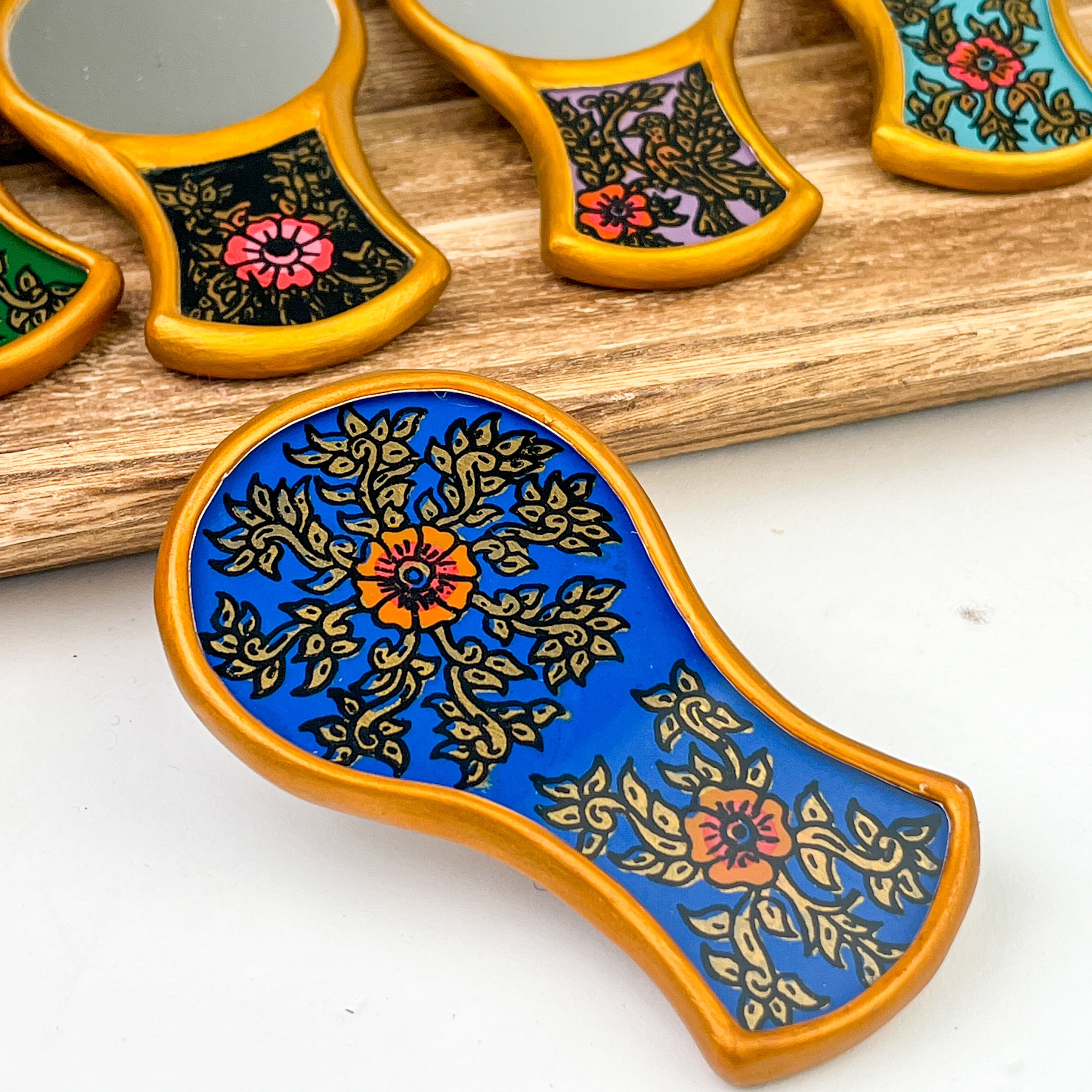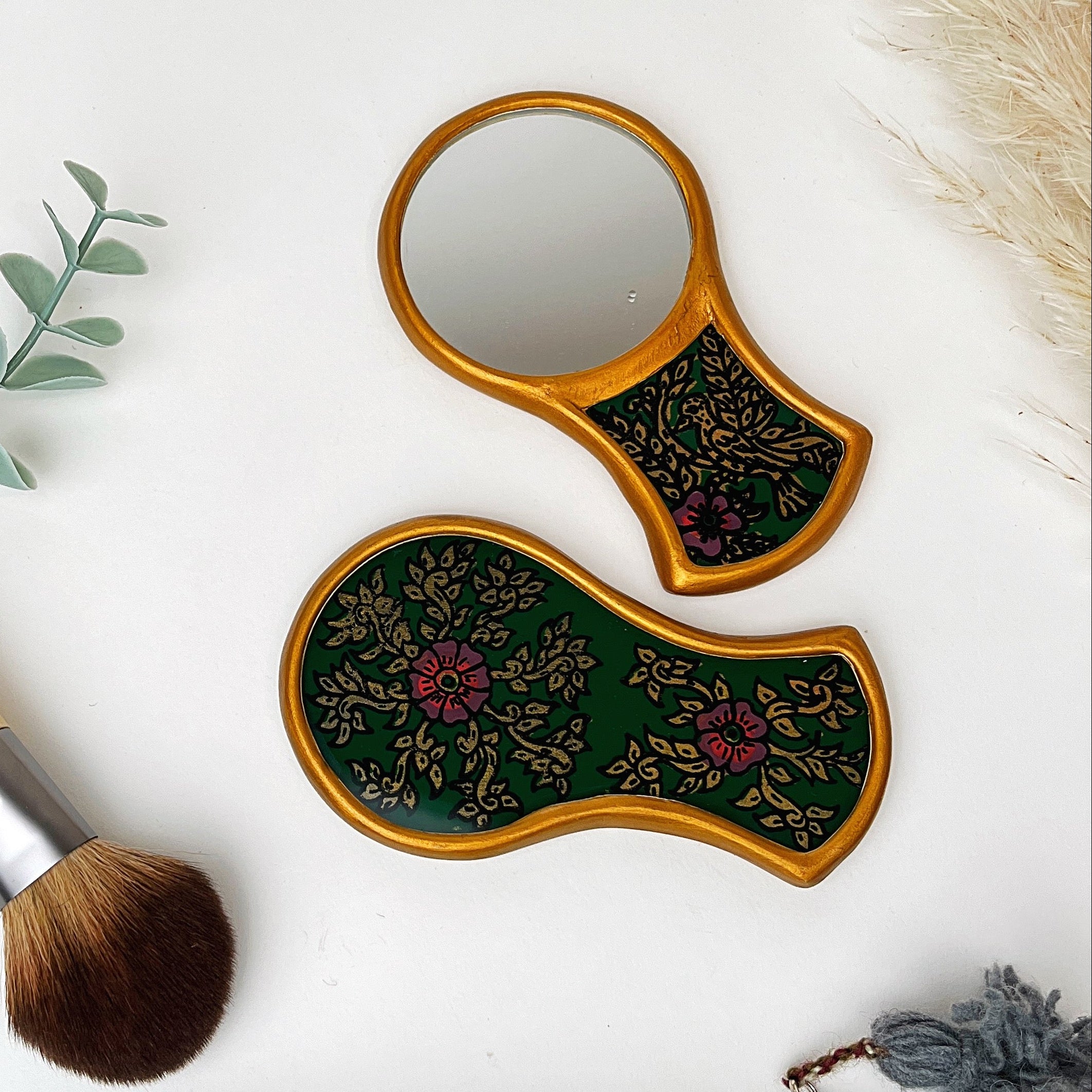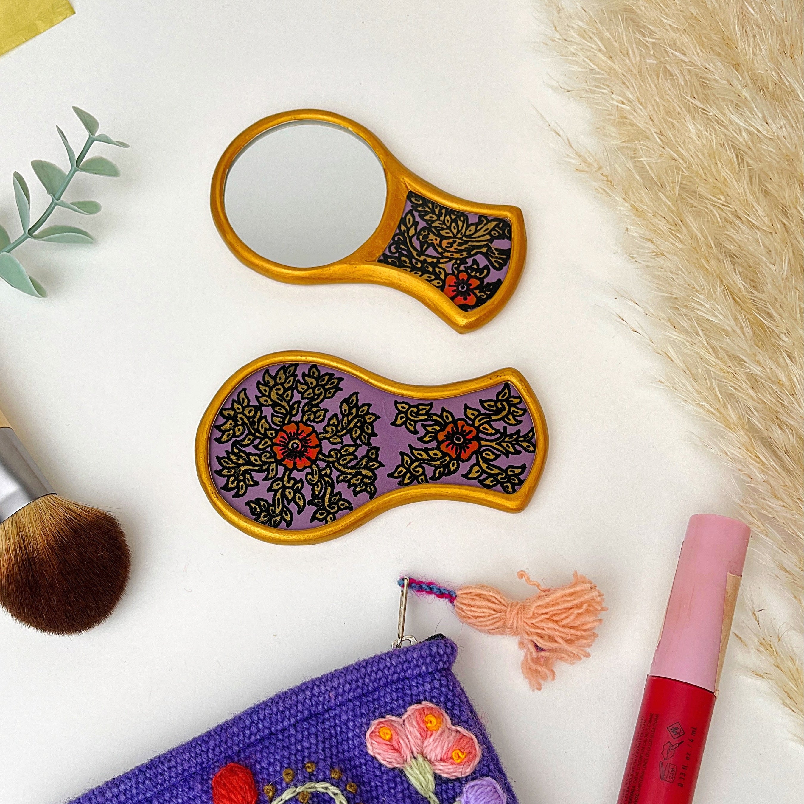 Mestiza Compact Mirror: Gilded Hand Painted Glass