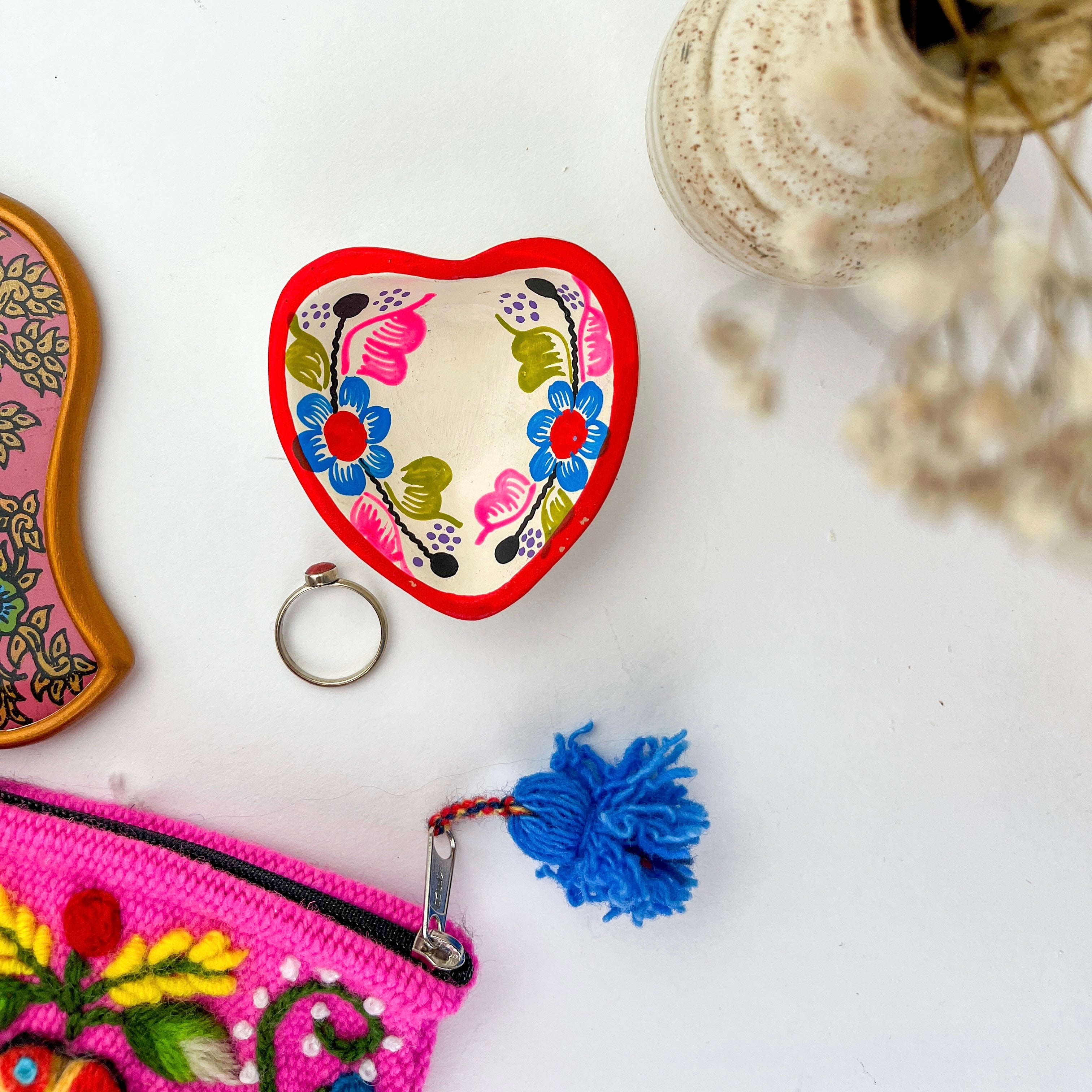 Amor Heart Dish – Floral Pottery Ring Dish