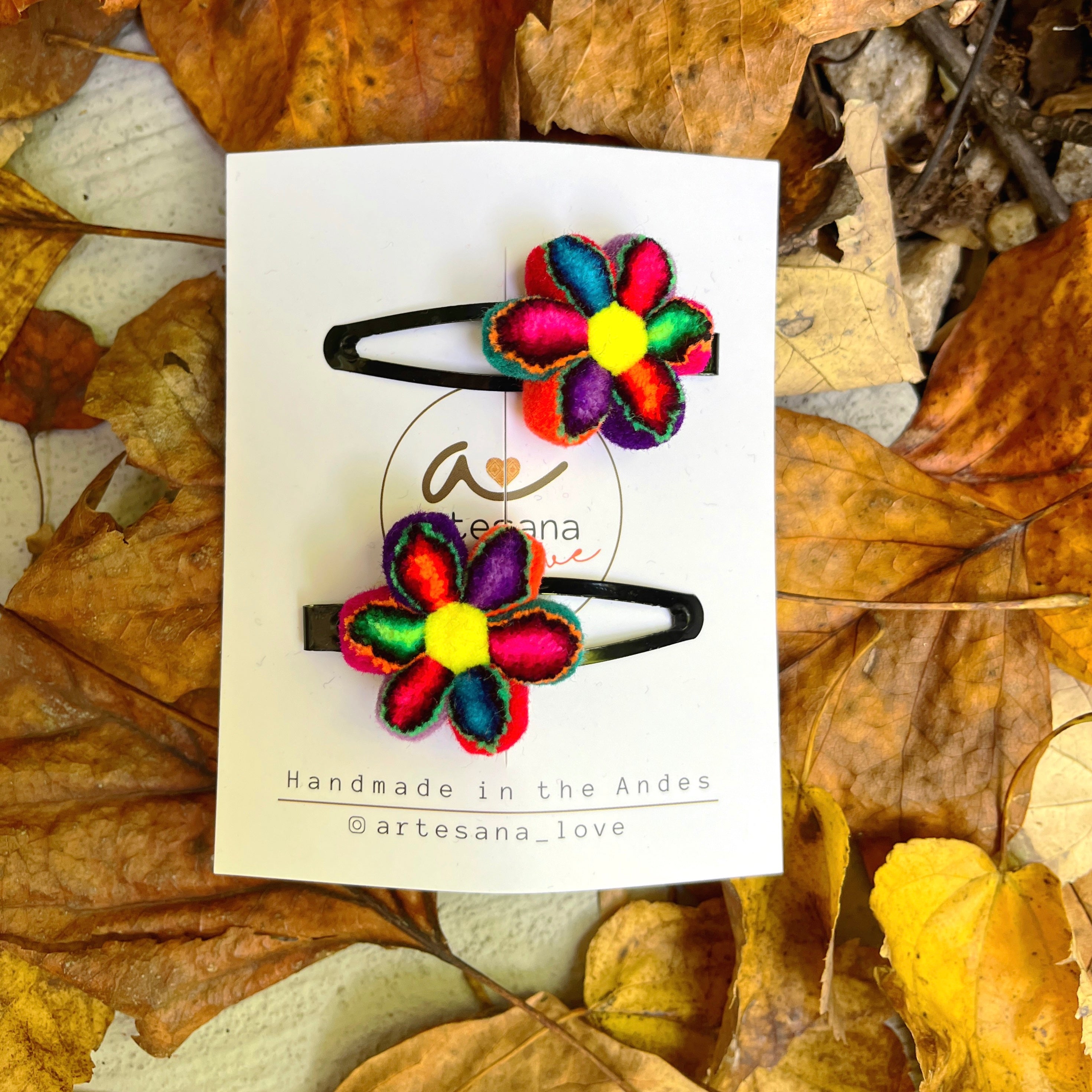 Tuktu Flower Pom Pom Hair Clips: Wool Blend Set