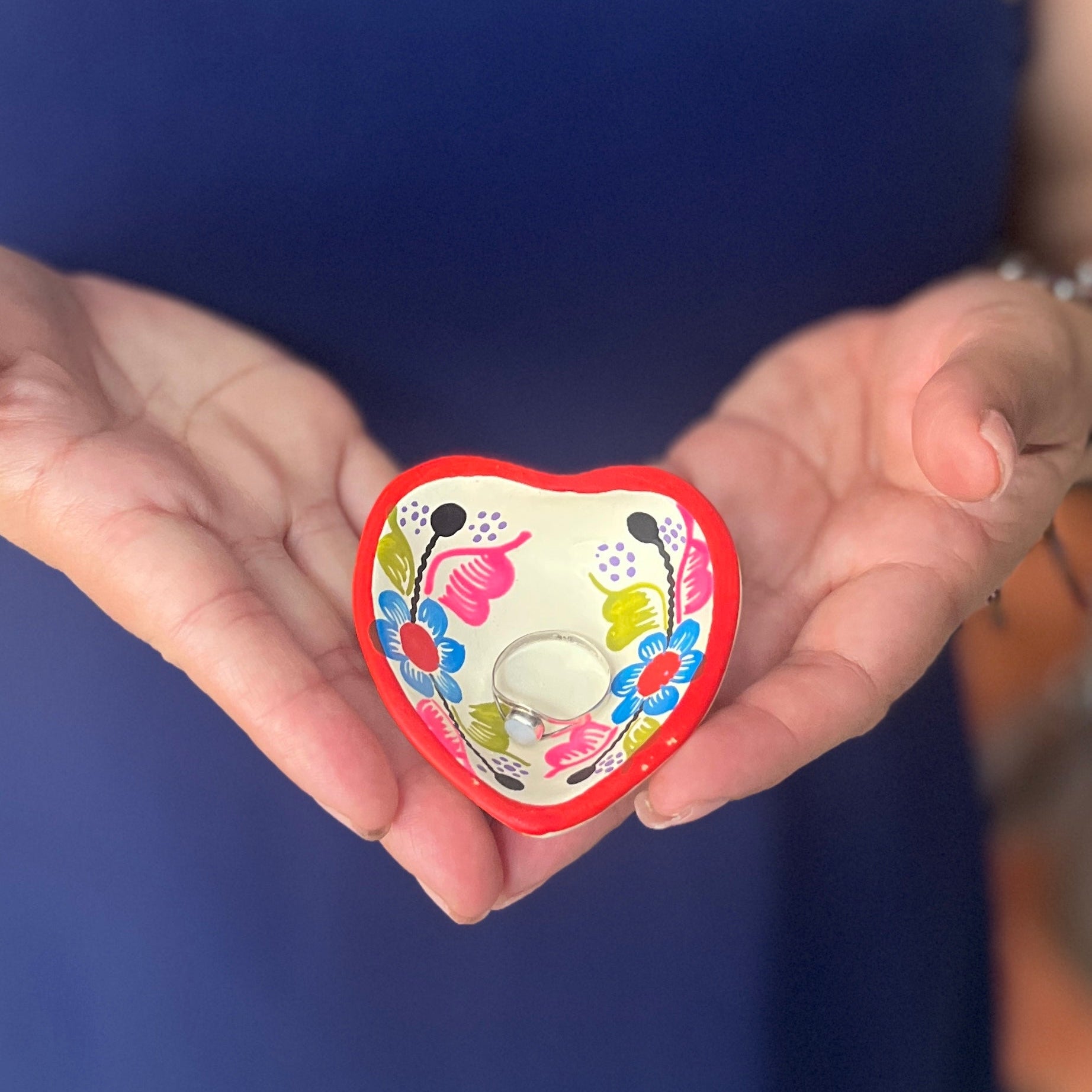 Amor Heart Dish – Floral Pottery Ring Dish