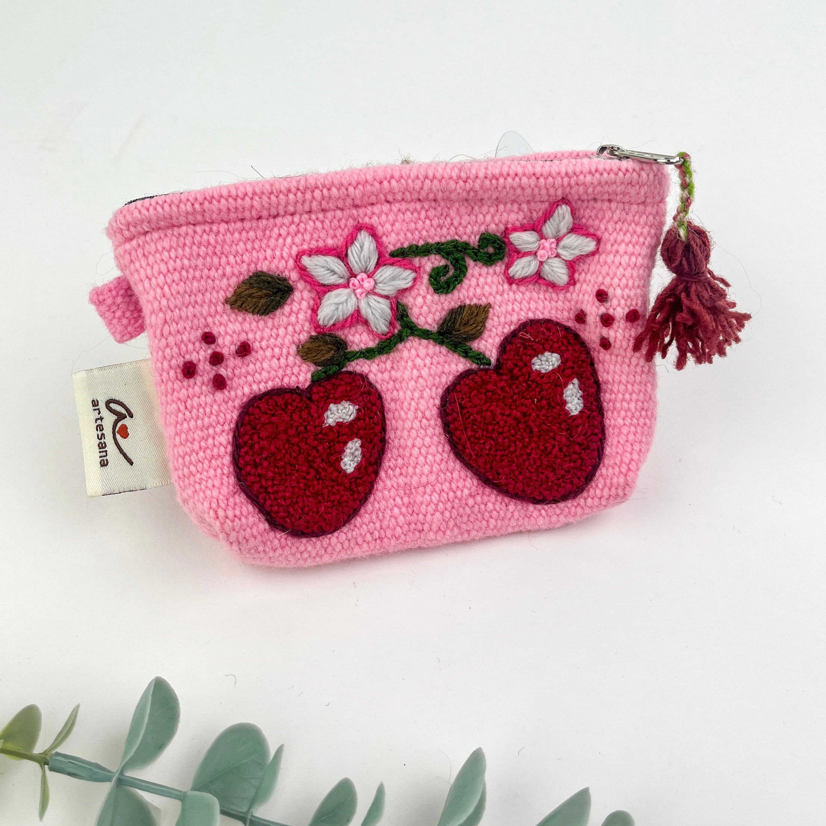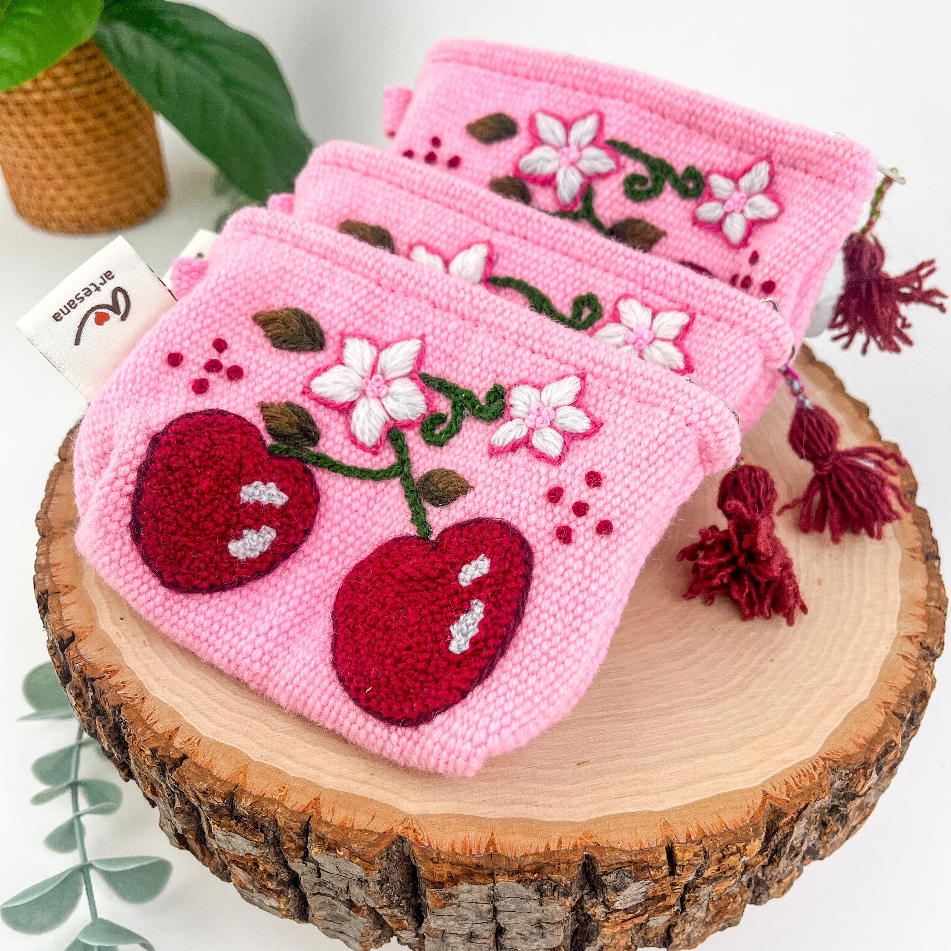 This irresistible artisanal black wool pouch is more than just a coin holder — it’s a mini statement piece. Featuring juicy, hand-embroidered cherries, each one stitched with care by talented artisans, this pouch blends bold whimsy with tradition.