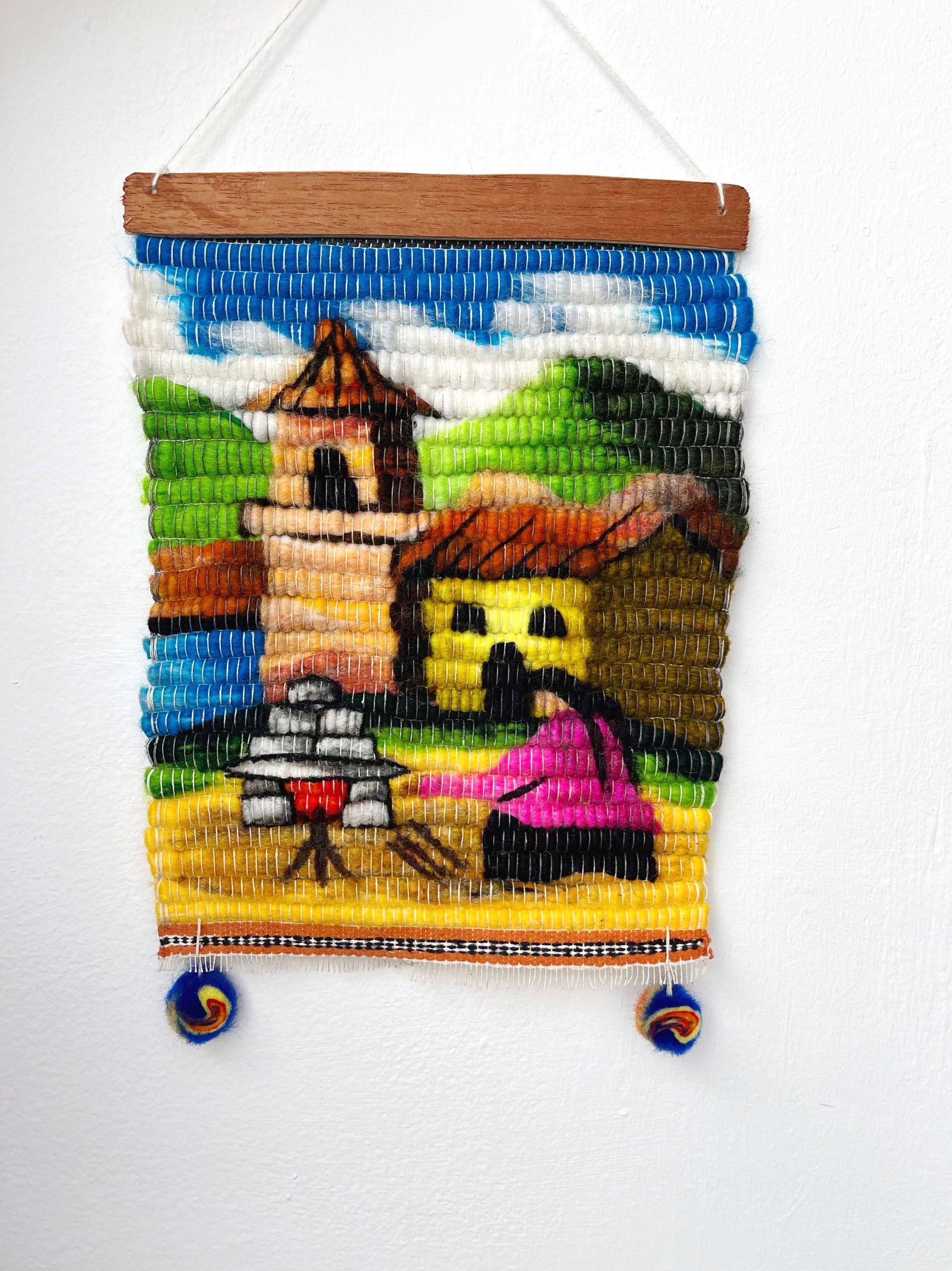 Add character to your home or office with our handmade Lively Cholita Tapestry. This piece beautifully portrays the breathtaking landscapes of the Andes with women in local ‘cholita’ outfit doing different activities. Each piece is meticulously crafted by skilled Quechua artisans, who pour their passion and cultural heritage into every thread, creating a work of art that tells a story of the vibrant life of the Andean region.