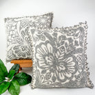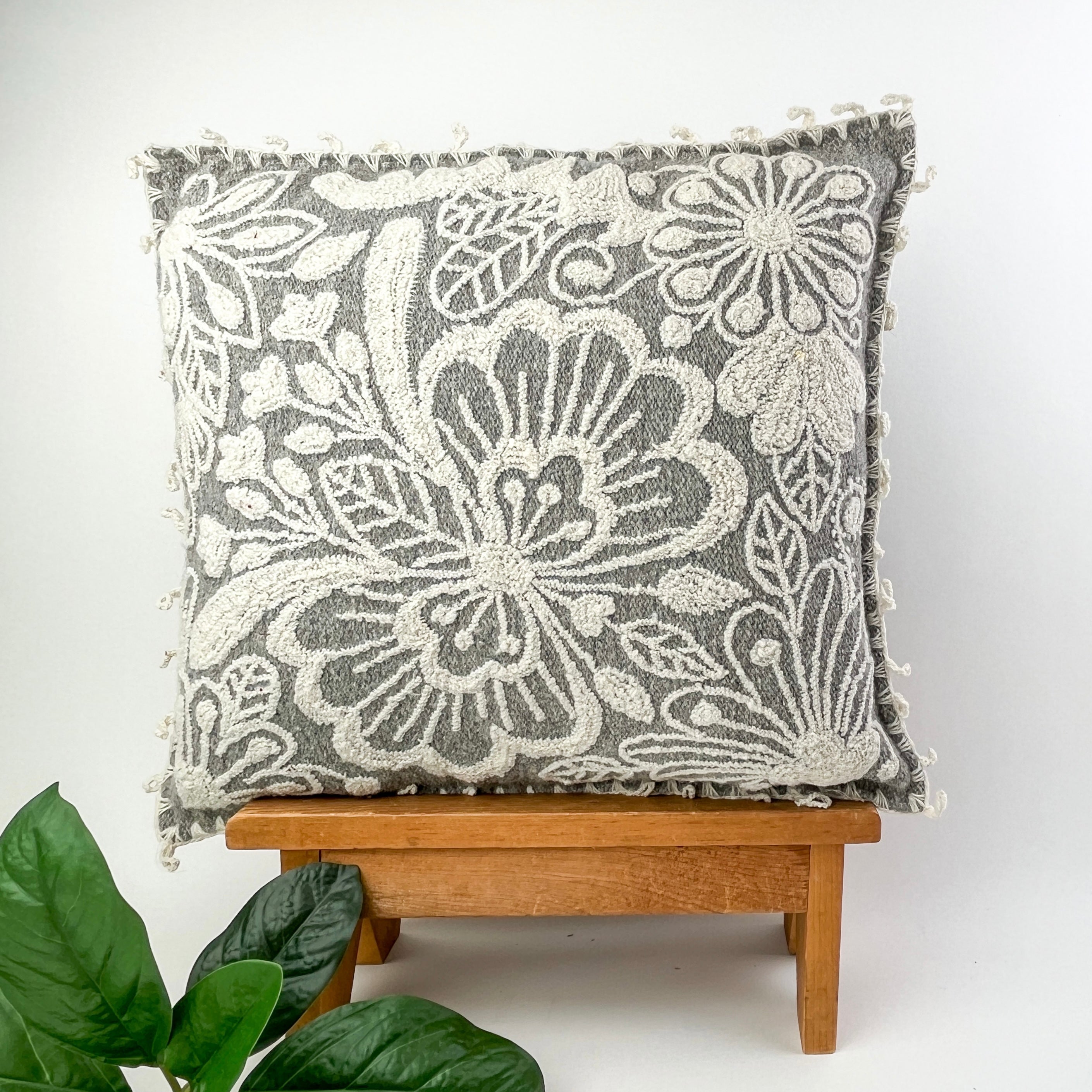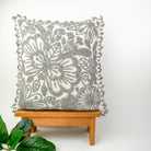 Floral Embroidery Wool Pillowcase: Gray White