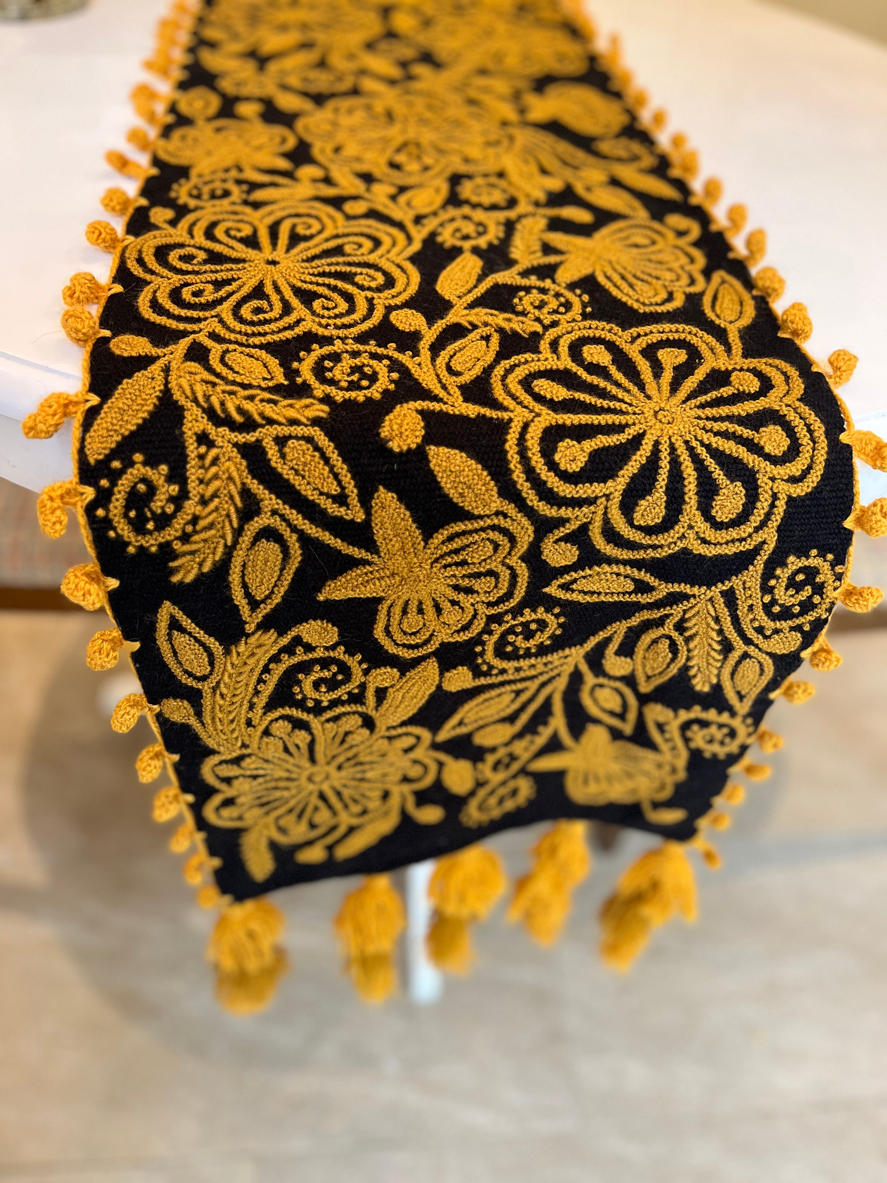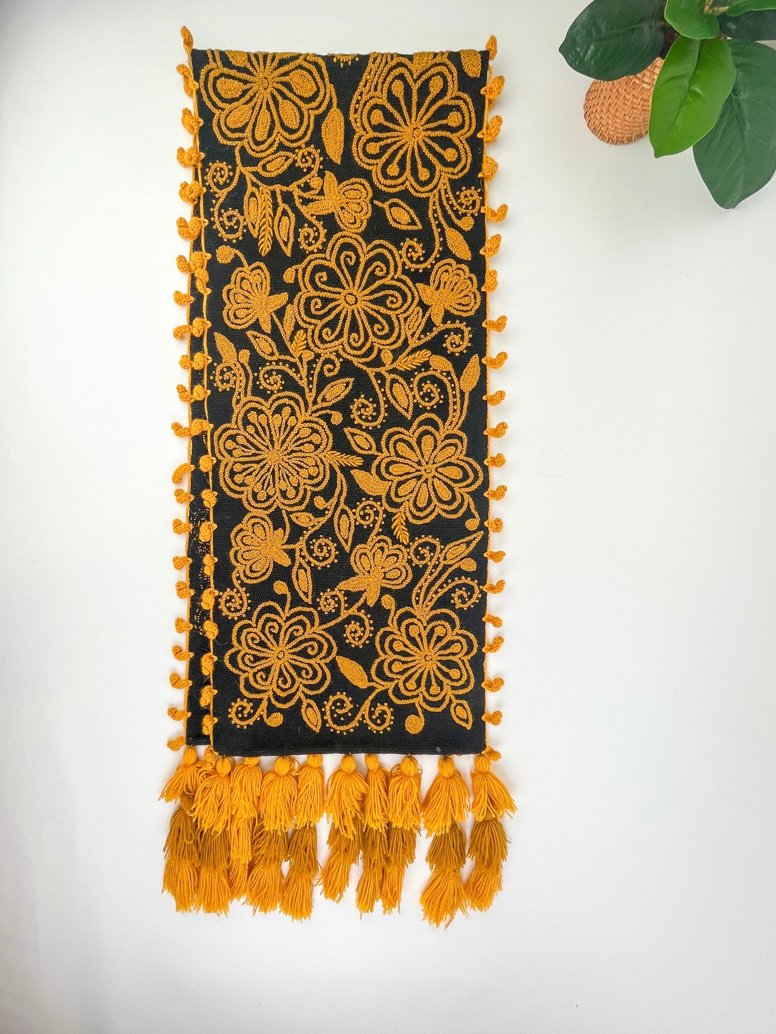 Flora Hand-embroidered Runner - Black Gold