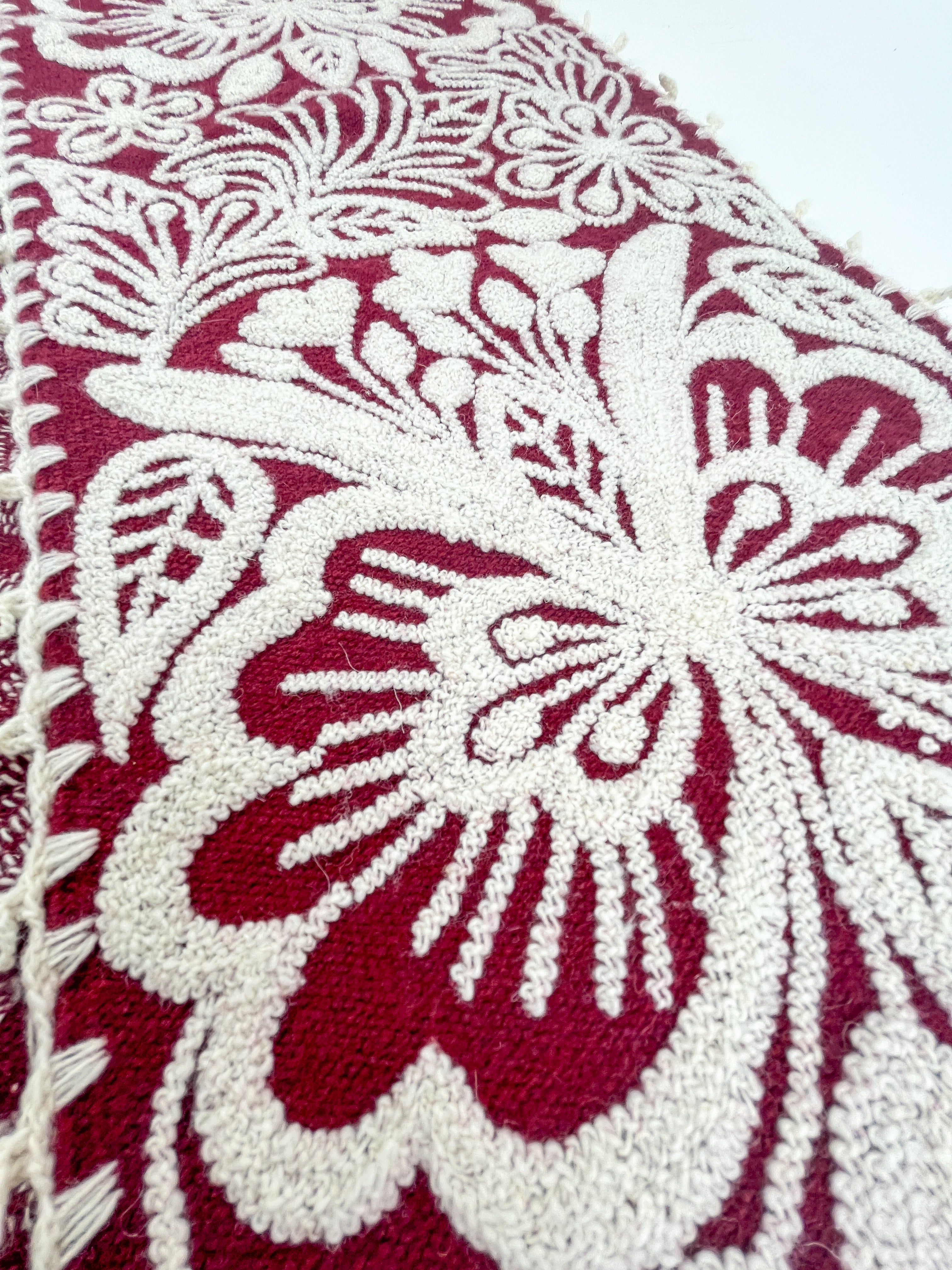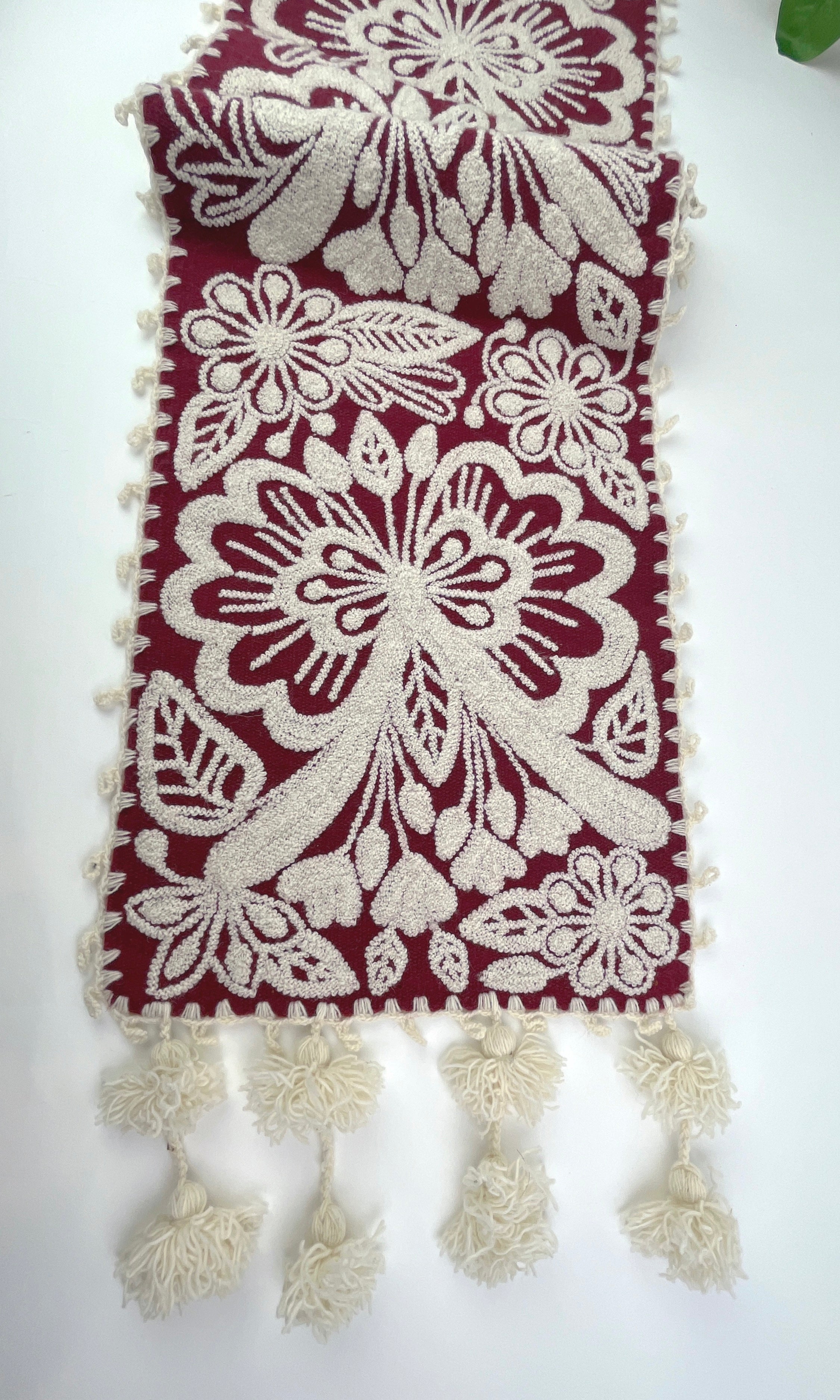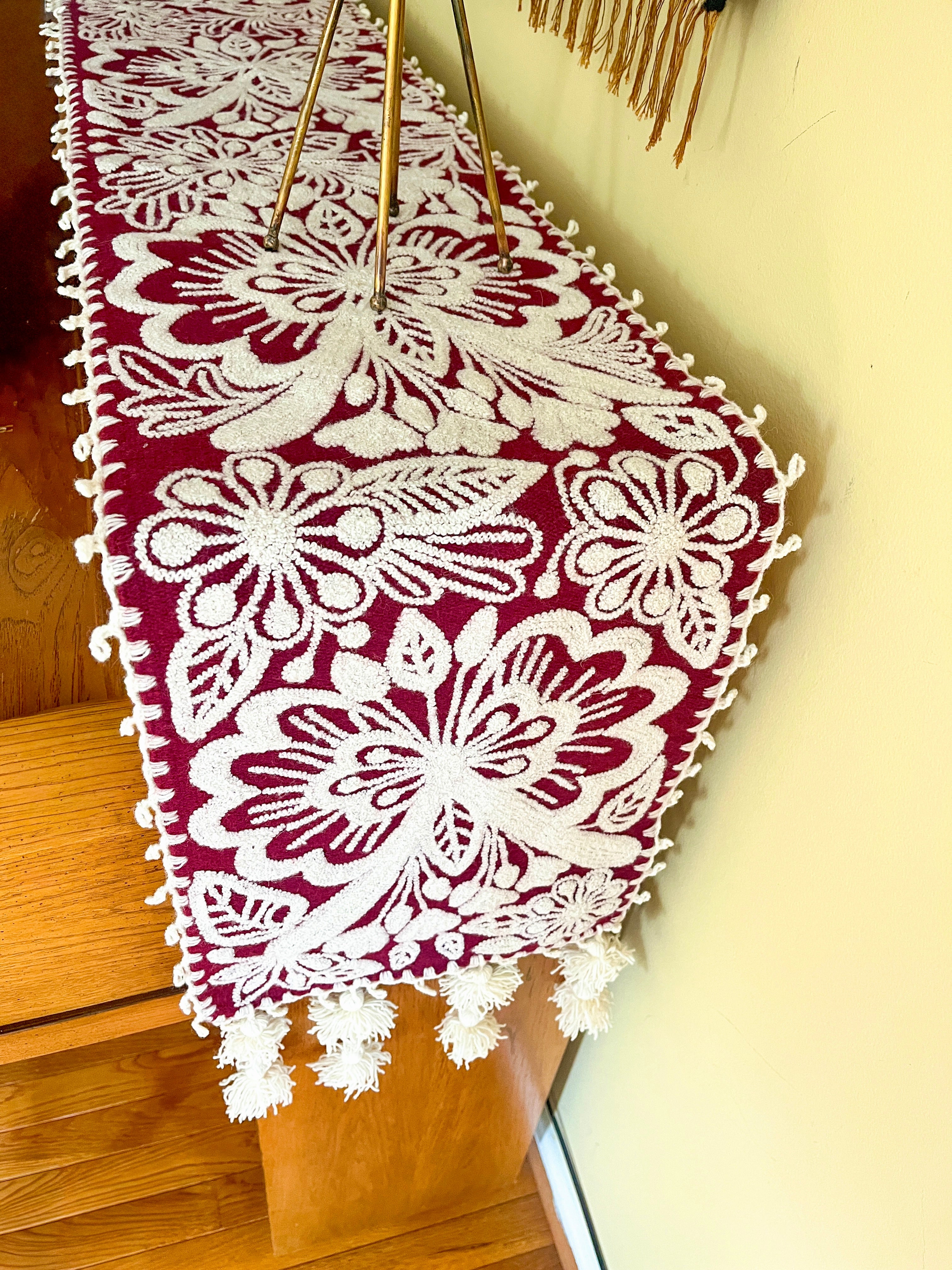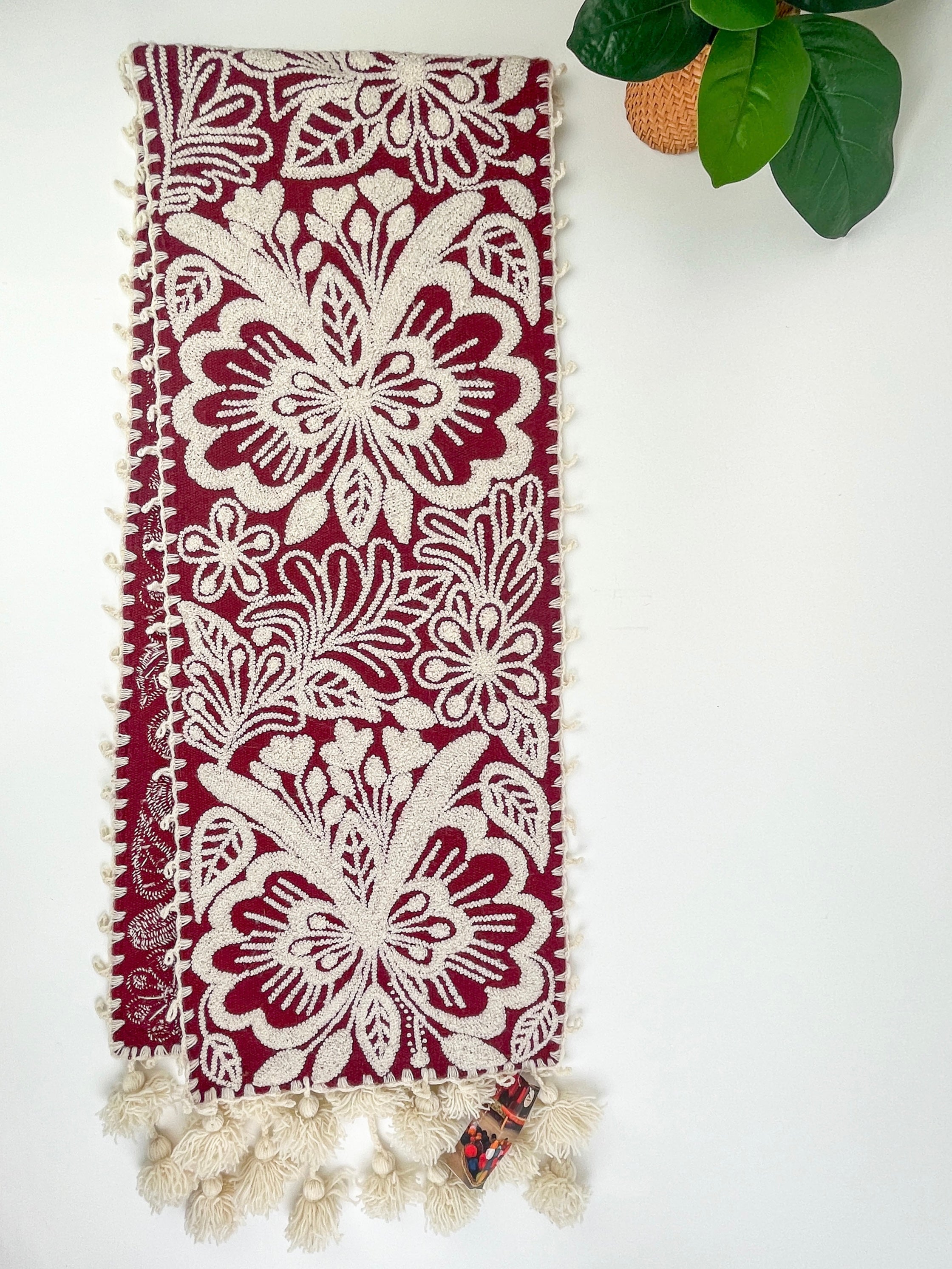 Whether you're hosting a dinner or just sipping your morning coffee, this vibrant piece brings warmth, meaning, and color into your home. Hand embroidered with a unique floral design, this runner is one-of-a-kind. Use it on your dining table, foyer, or as a bed foot to add a smile to your day!