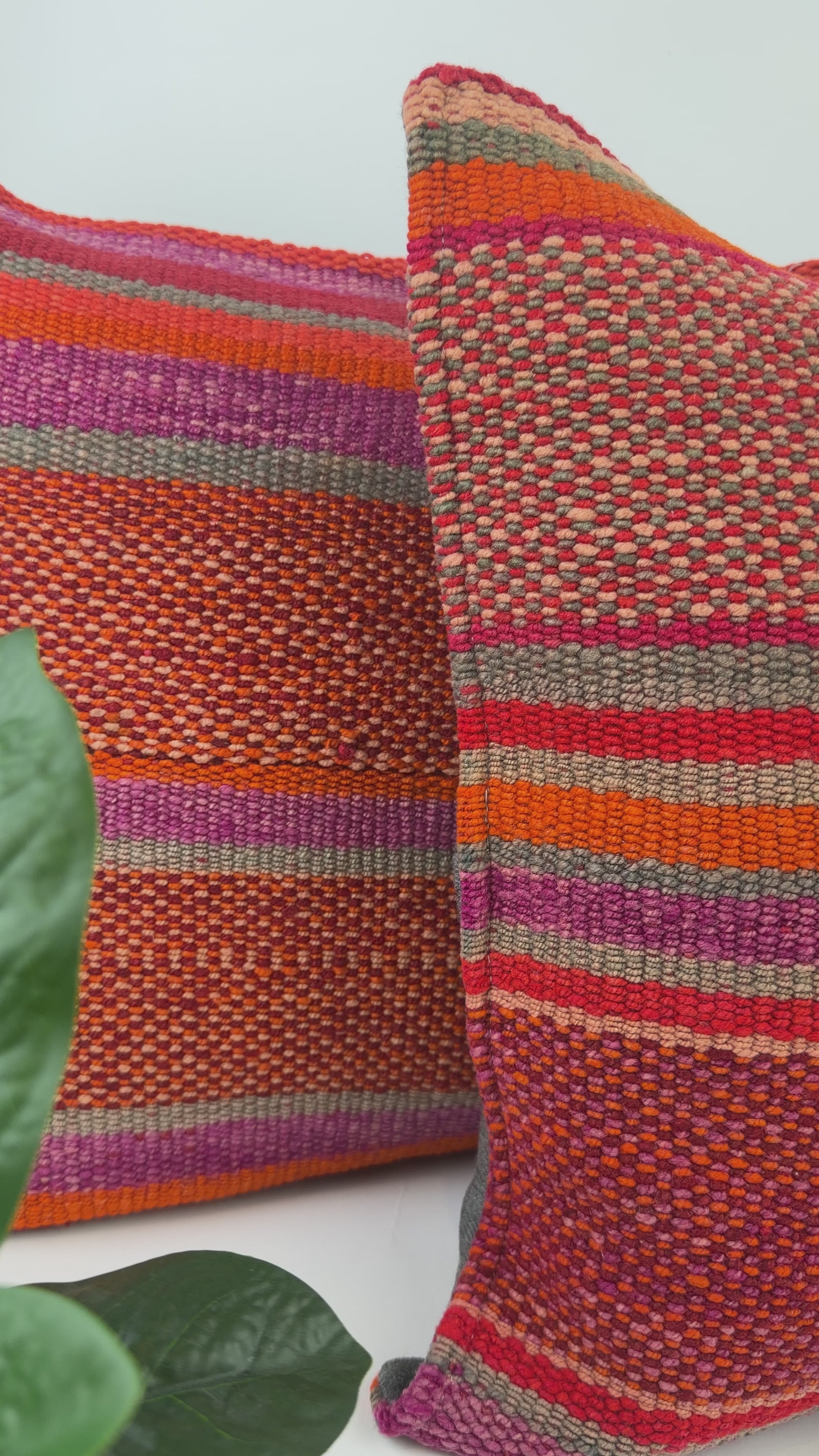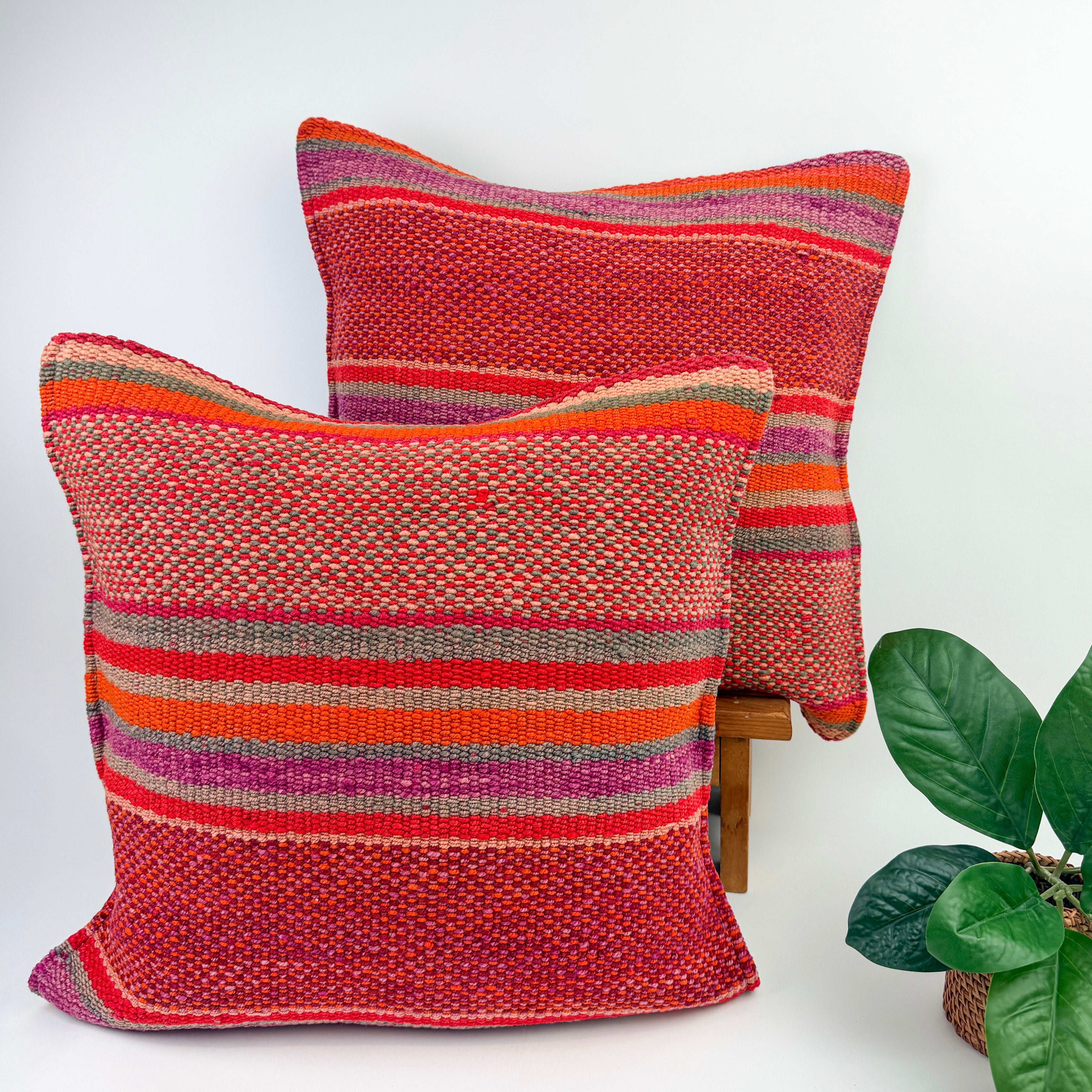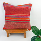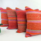 Handwoven Wool Pillow Cover 70: (18x18) Red Orange Stripes Boho Home Decor
